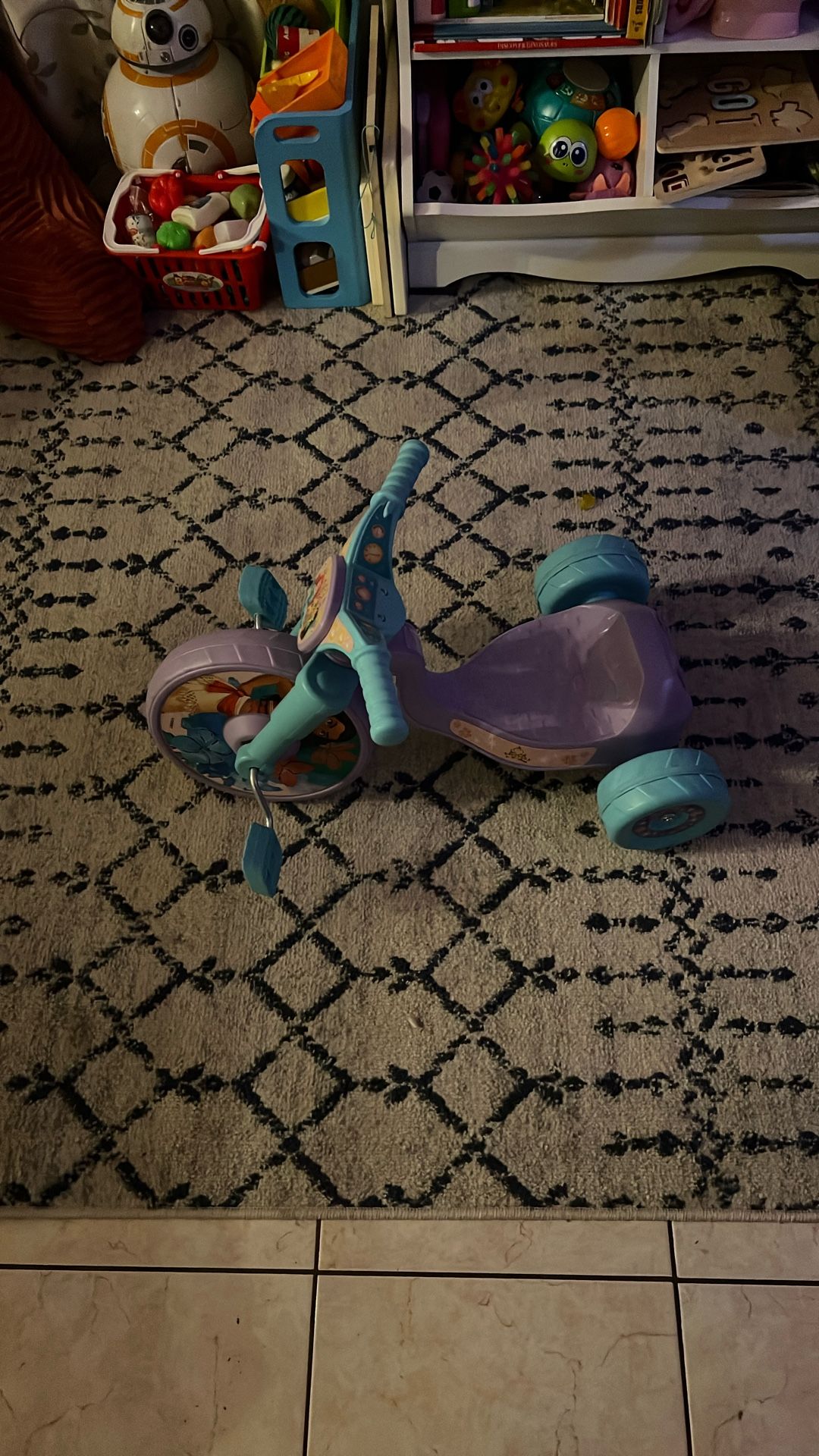 Your little one will love this adorable purple and teal tricycle! Perfect for indoor or outdoor play, it’s lightweight, easy to ride, and stable for young riders. The fun character design makes it even more exciting for kids to use every day. It plays music and has sound effects ✅ Sturdy and safe for toddlers ✅ Smooth-rolling wheels ✅ Great for developing balance and coordination ✅ Clean and in almost new condition