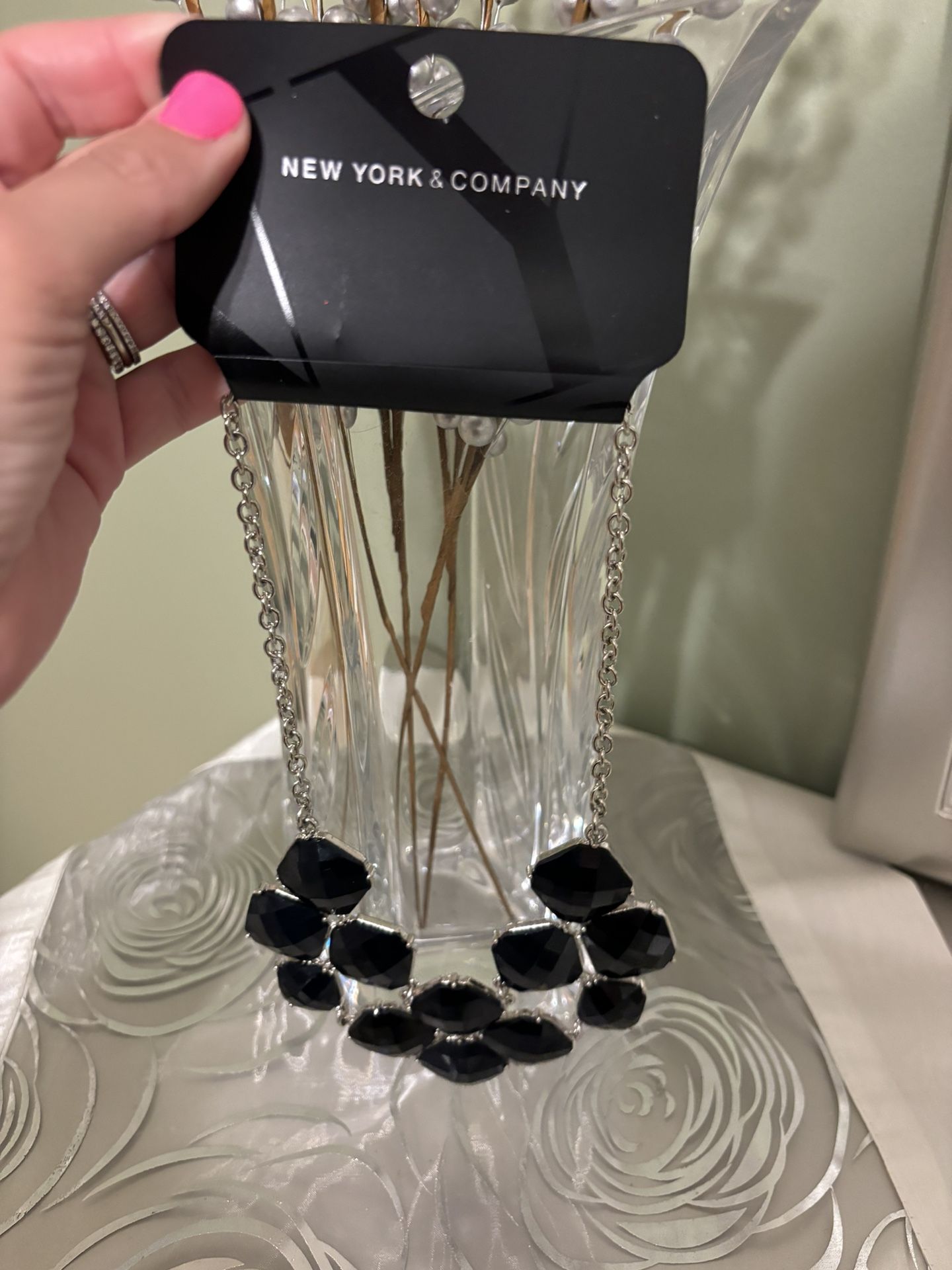 New York & Company Black and Silver Statement Necklace