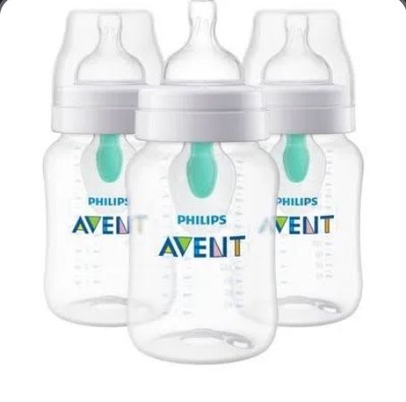 6 Philips Avent Baby Bottles Set with 1 month plus nipples and 4 0m+