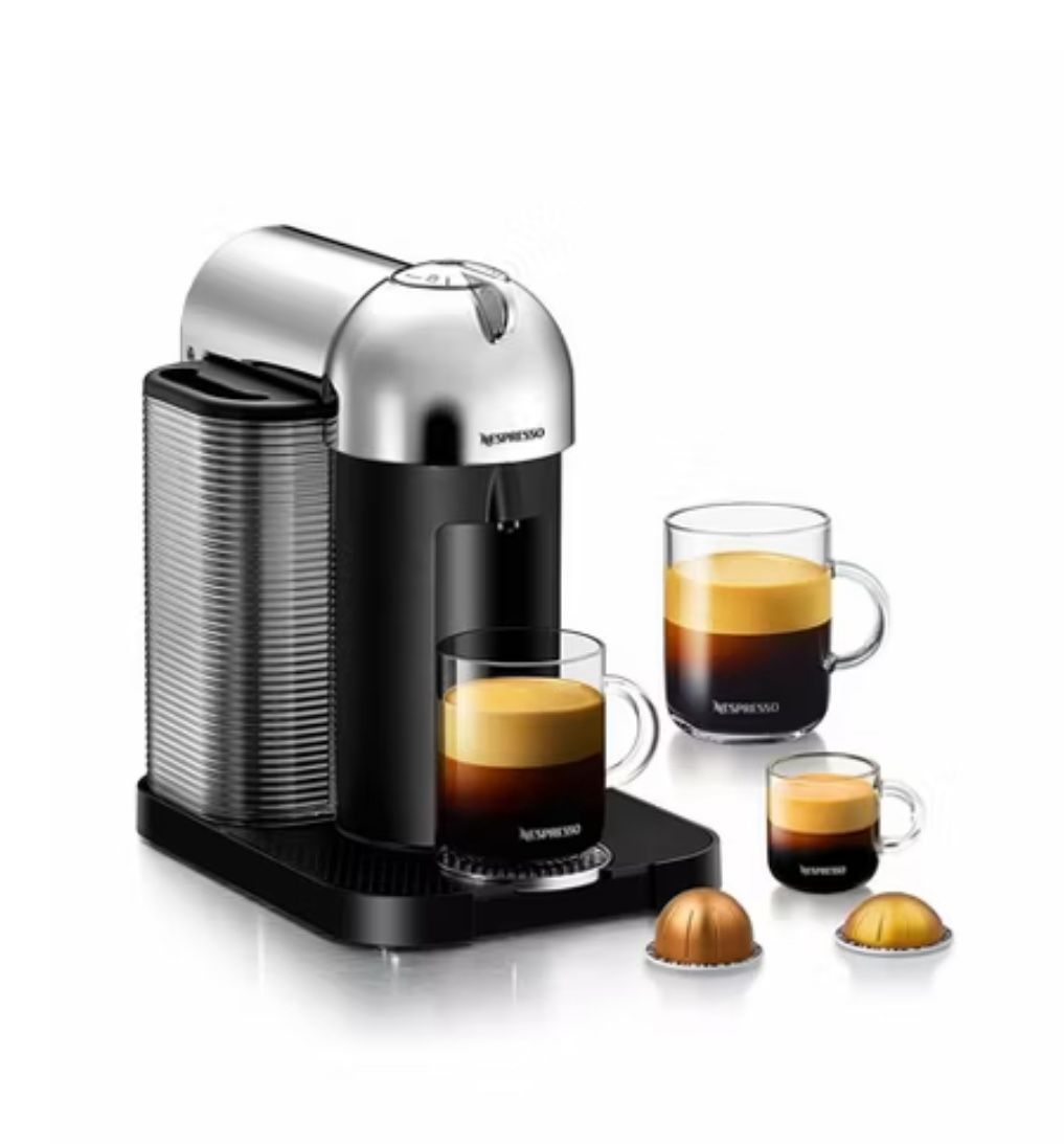 Nespresso Vertuo Chrome Coffee Maker and Espresso Machine by Breville: Removable Reservoir, 12 Capsules, Automatic Shut-Off