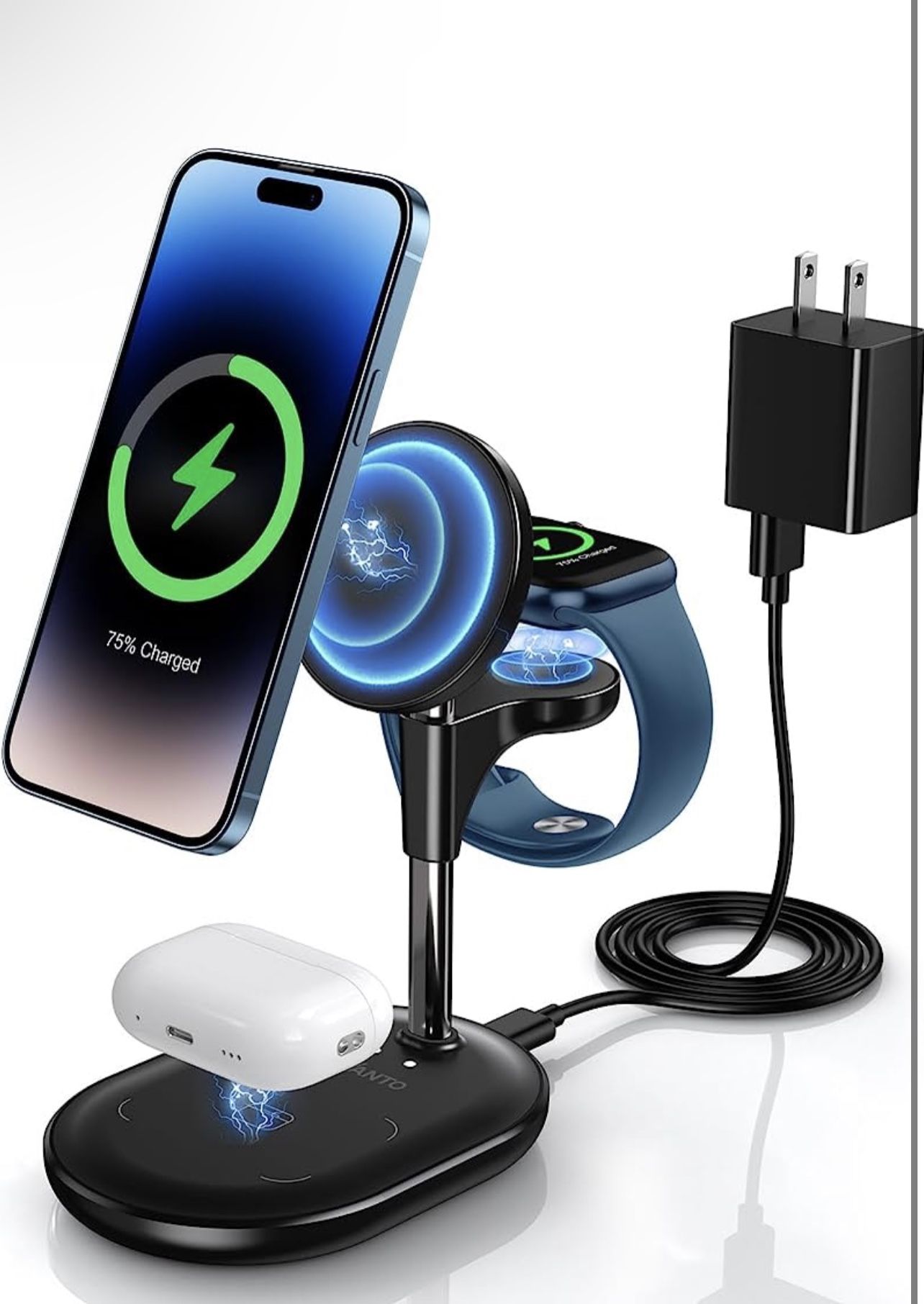 3 in 1 Wireless Charging Station for Apple MagSafe Charger, 15W Fast Magnetic Mag-Safe Charger Stand for iPhone 14 13 12 Series Apple Watch AirPods Mu