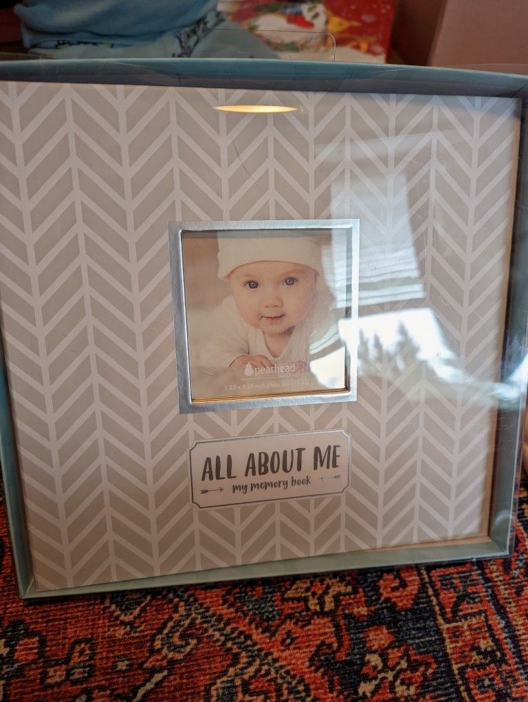 Brand new unopened baby book. Gray Chevron pattern, gender neutral