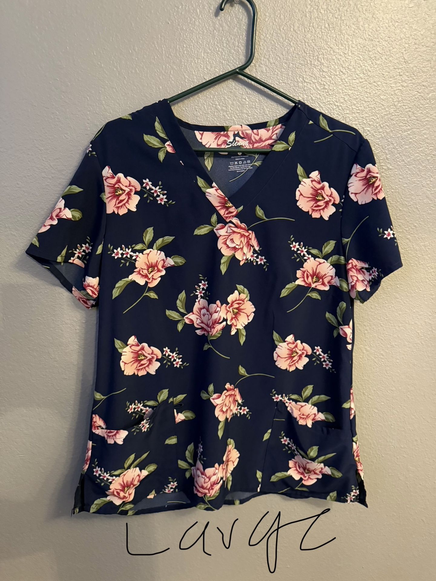 like new scrubs, tops are large bottoms are medium petite. $20 for each set of figs scrubs. Five dollar scrub tops.