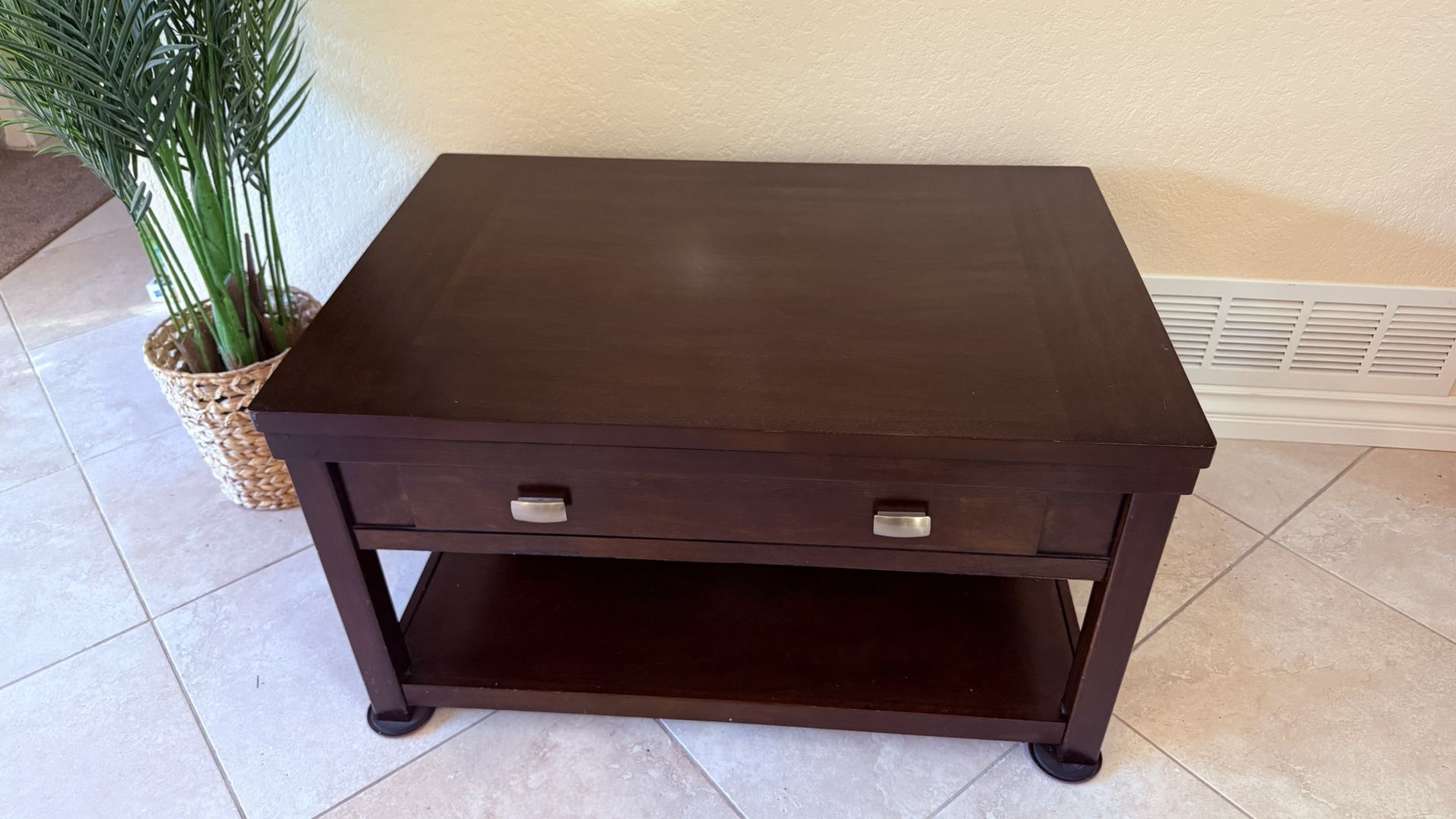 Lift top Coffee Table from Ashley Furniture. Good condition. Paid over $400 selling it for $150 Perfect table for a college student, or working at home doing computer work while watching TV or just eating a meal 36” length 24 1/2” wide 20” high Wheels on the bottom for easy moving. I put Removable Casters on the bottom of each leg which also helps glide it on carpet. Thank you for looking! .