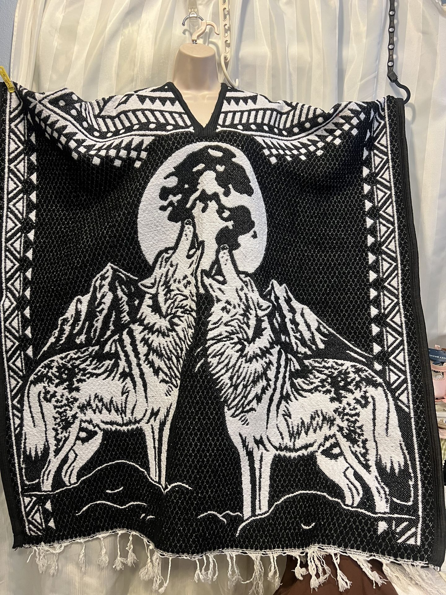 Mexican Lobo (wolf ) Poncho , Reversible Unisex