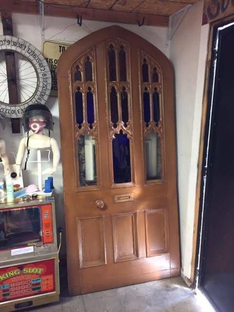 Please read full details! Stunning Antique Door with stained glass probably from an old church. Fantastic antique condition. Solid wood approx 2" thick. Comes complete with built in brass letter slot. This would make an amazing front gate or front door for any home, bar, hotel, or business. PLEASE NOTE: Price is for the door on its own - not the surrounding frame. Extremely rare piece. $1400 OBO Easy pick up in Hollywood Lots more treasures @platform9vintage