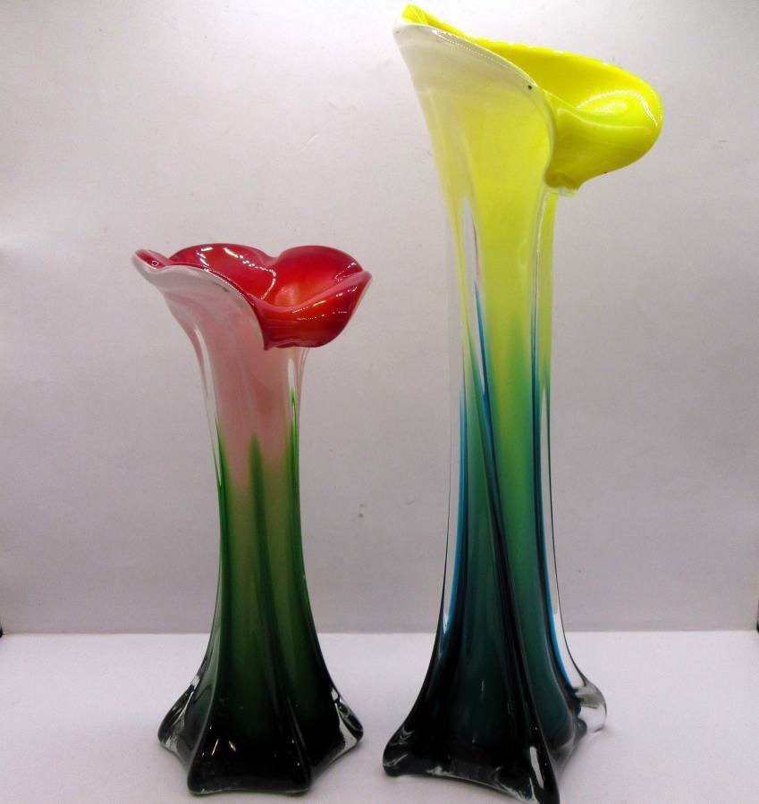 Murano Style Hand Blown Art Glass Jack in the Pulpit Calla Lily Vases