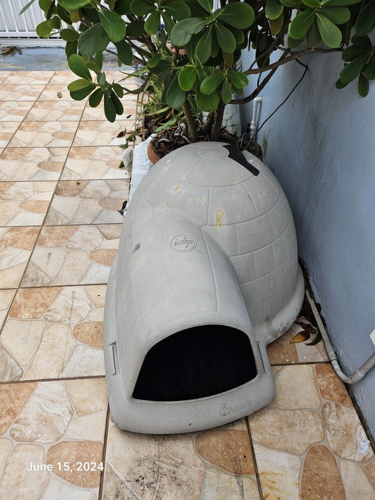 Used but still does the job. Needs to be pressure washed. Please see photos for measurements Tags: dog house pet home igloo