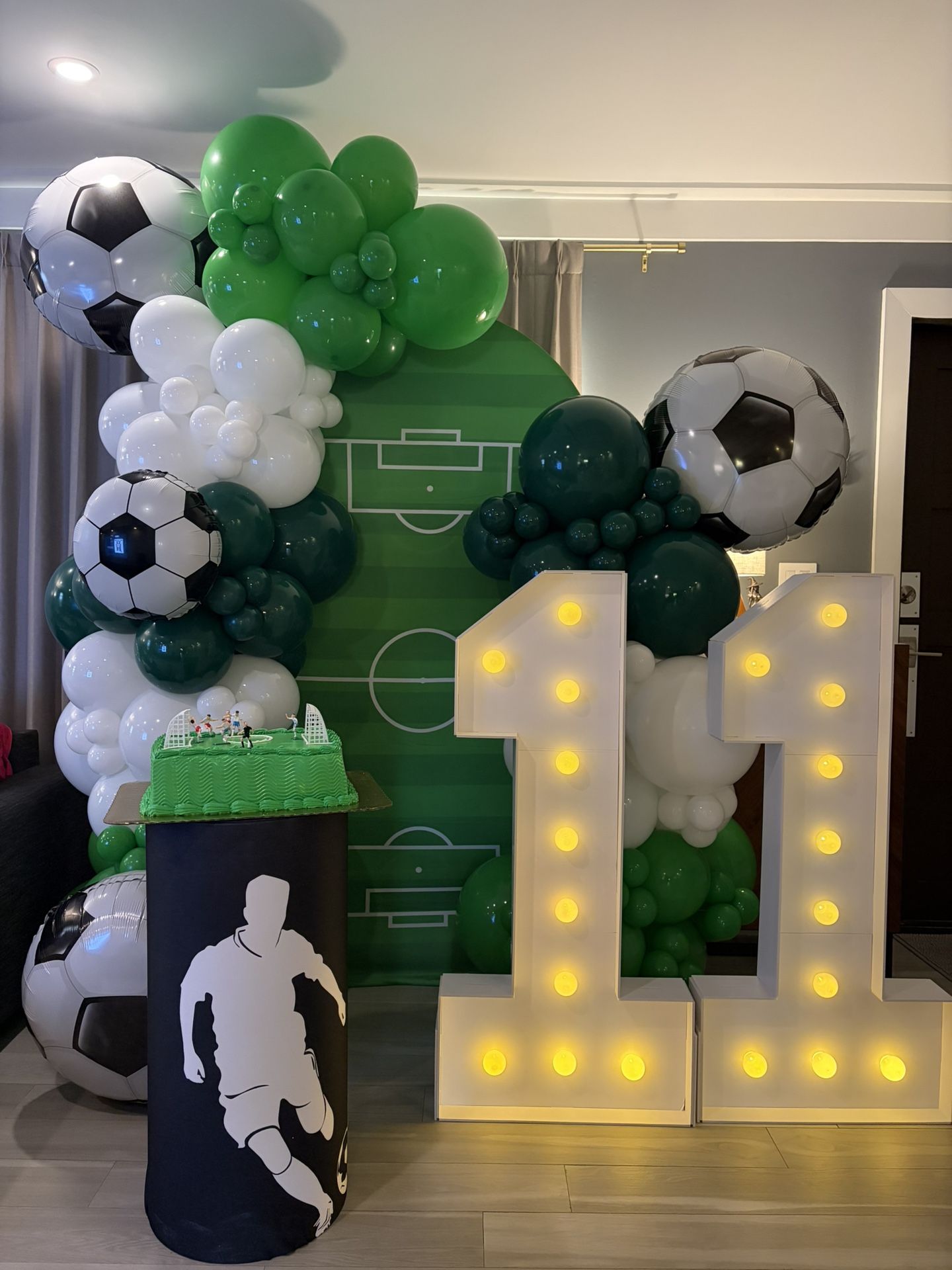 We just had our sons 11th birthday party. The balloons and the numbers are free . We have to return the arc and pedestal