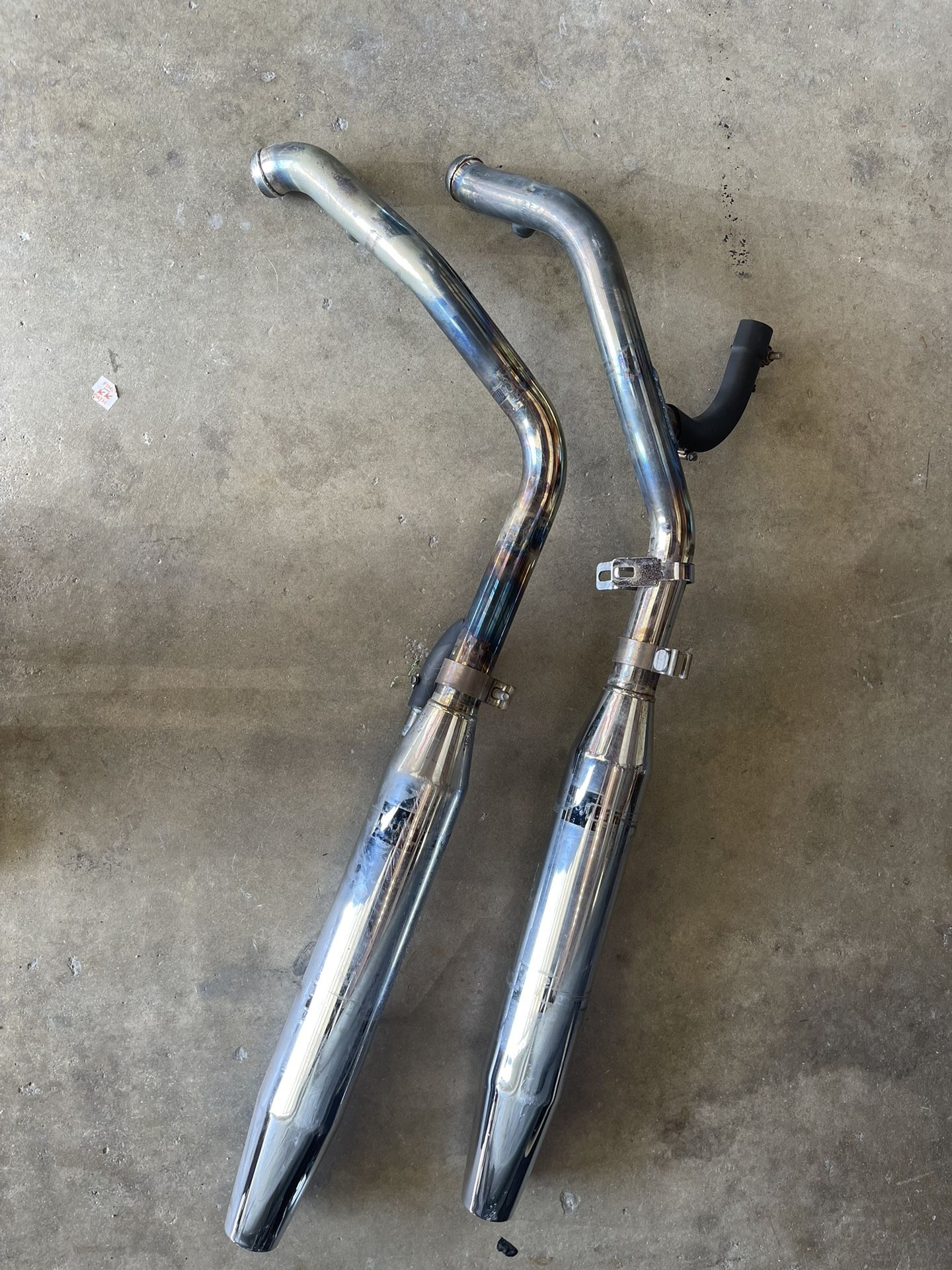Stock pipes off of a 2011 dyna super glide with 96in motor. Pipes in decent condition but heat shields are in great condition.