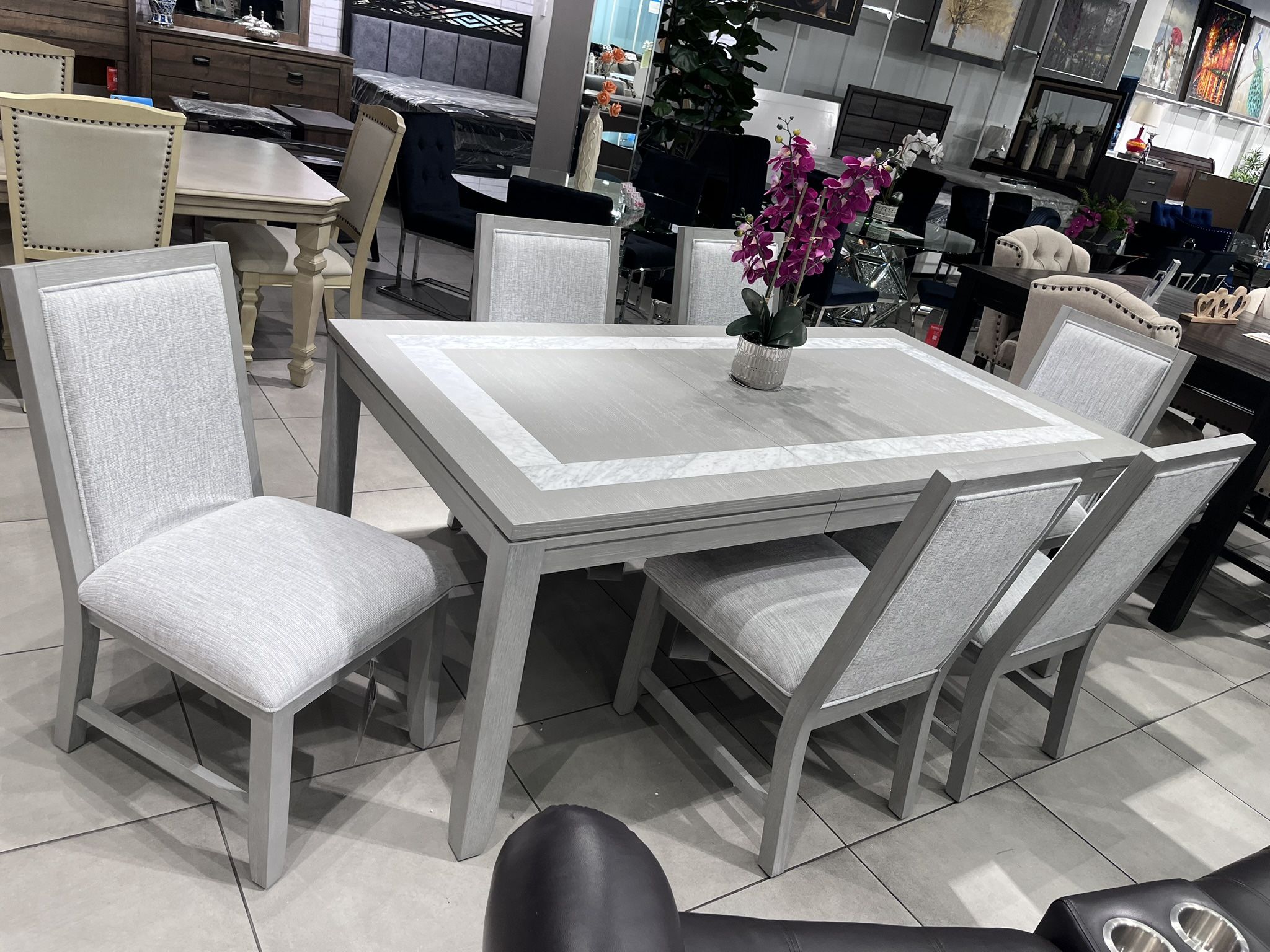 7pc Dining Set 6 chairs and table 🔥Take it home with only $50 down 🔥 Financing available 👨💻 No credit needed 90-100 day payment option Up to 12 months without interest OAC You can apply from your phone 📱 Se habla español 📍We invite you to come visit us at either of our two locations here in Las Vegas!📍 Imperial Furniture @ Galleria Mall 1300 W Sunset Road #1230 Henderson NV 89014 INSIDE Galleria Mall (702-382-2010) Or Imperial Furniture #2 1312 E Charleston Blvd Las Vegas Nv 89104 Next to Resco’s