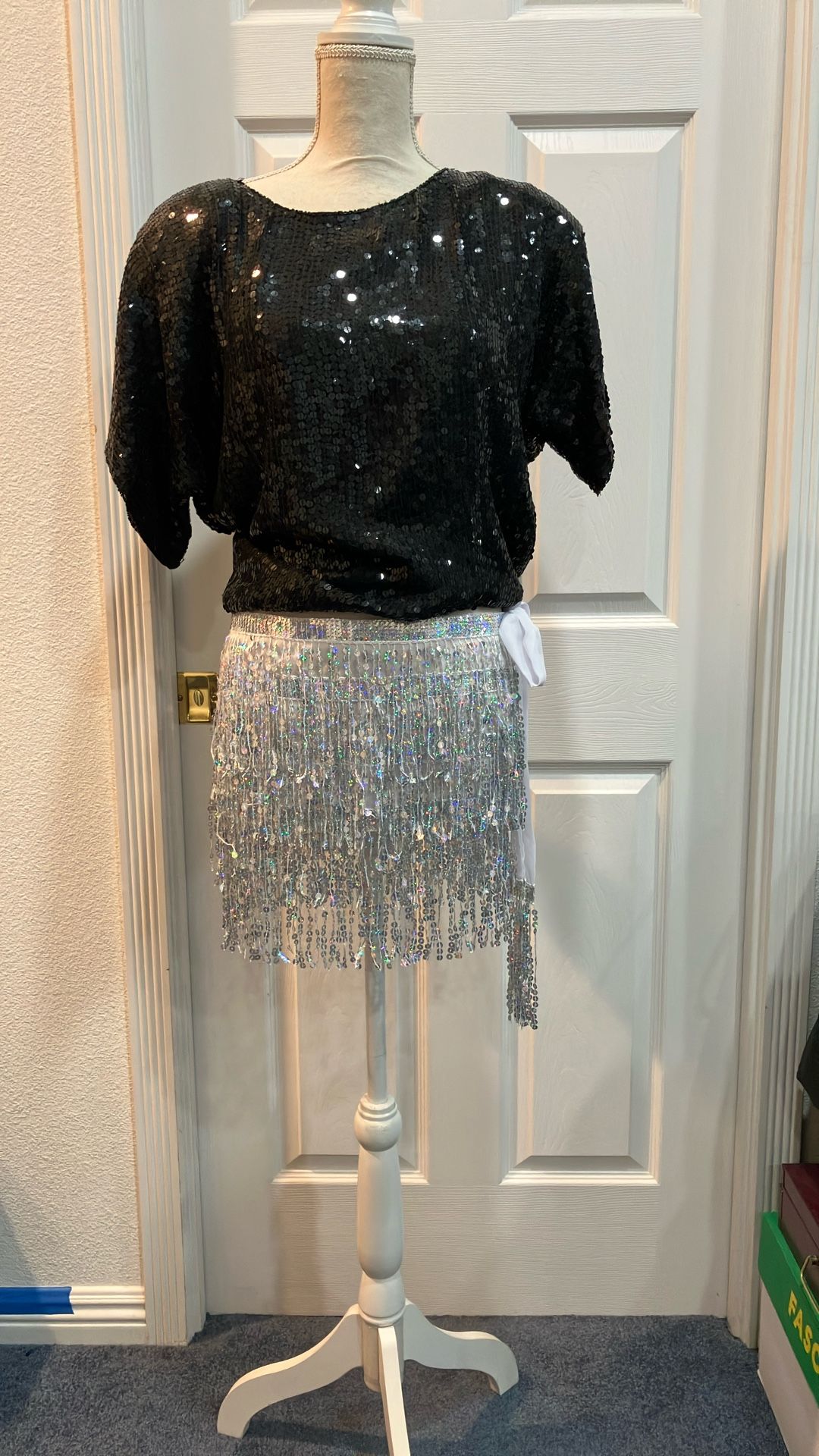 Silver Shimmer Wrap Sequin Fringe Skirt