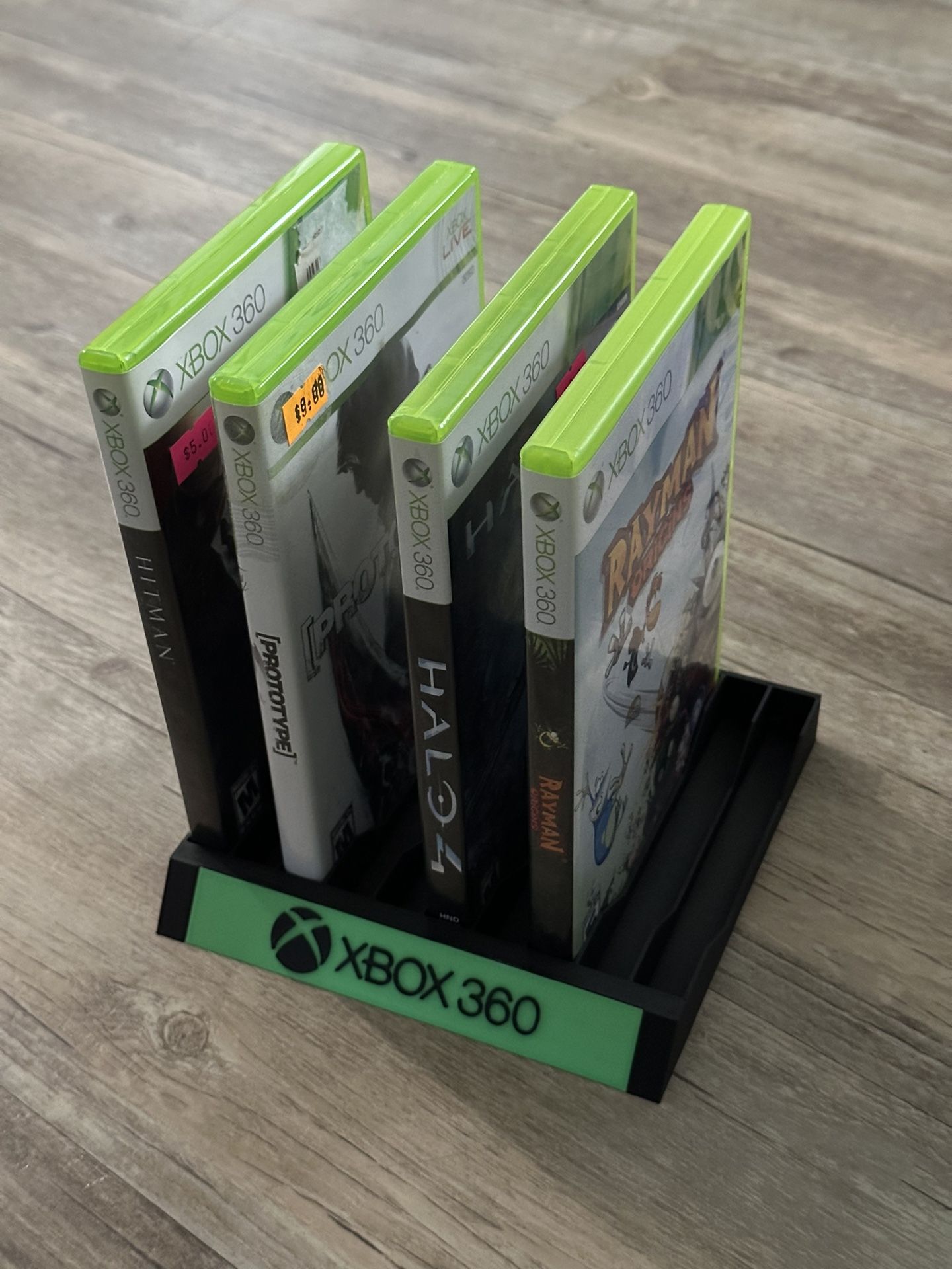 Xbox 360 Game Holder / Organizer. Hold up to 10 Games per unit 🎮 - DM for color options available 🎨 INCLUDED: - Game Holder/Organizer NOT INCLUDED: - Modeled Games NEED: - *All Items are 3D Printed* (Scroll down for more info) (Check Page for other prints or DM for a request) PRINT MATERIAL: PLA (Base-Black/Lettering-Black/Label Plate-Green) - DM for other color options ⭐️CUSTOMIZATION : Filament color 🎨 *Don’t see printed something you wanted? Shoot me a DM for a quote* TAGS: Xbox / Xbox360 / RetroGames / XboxSeriesX /XboxOne / Organizers ✨Bringing Characters/Designs to Life, One Print at a Time.✨ ‼️DISCLAIMER: Some print files I use are free online. Feel free to find it and print for yourself or try similar designs. Some print files are paid subscription models and are paid for monthly. I simply print for my own convenience and I’m trying to make some money back on items that I’ve printed at some point.‼️