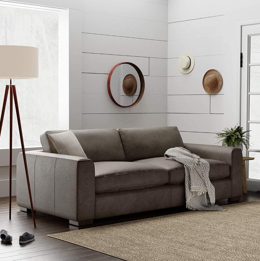 Extra-Deep Down-Filled Leather Sofa Couch, 89"W, Dark Grey
