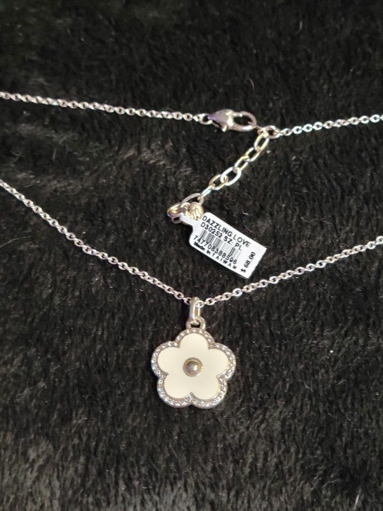 This beautiful flower will complement the necklines of everything you wear, and the hand-set crystals surrounding it will add just a touch off sparkle that calls the right amount of attention. Lobster Claw. 16 to 18 inch adjustable chain. Beautiful necklace with sparkling crystals. This necklace is new and has never been worn with tag attached. #5