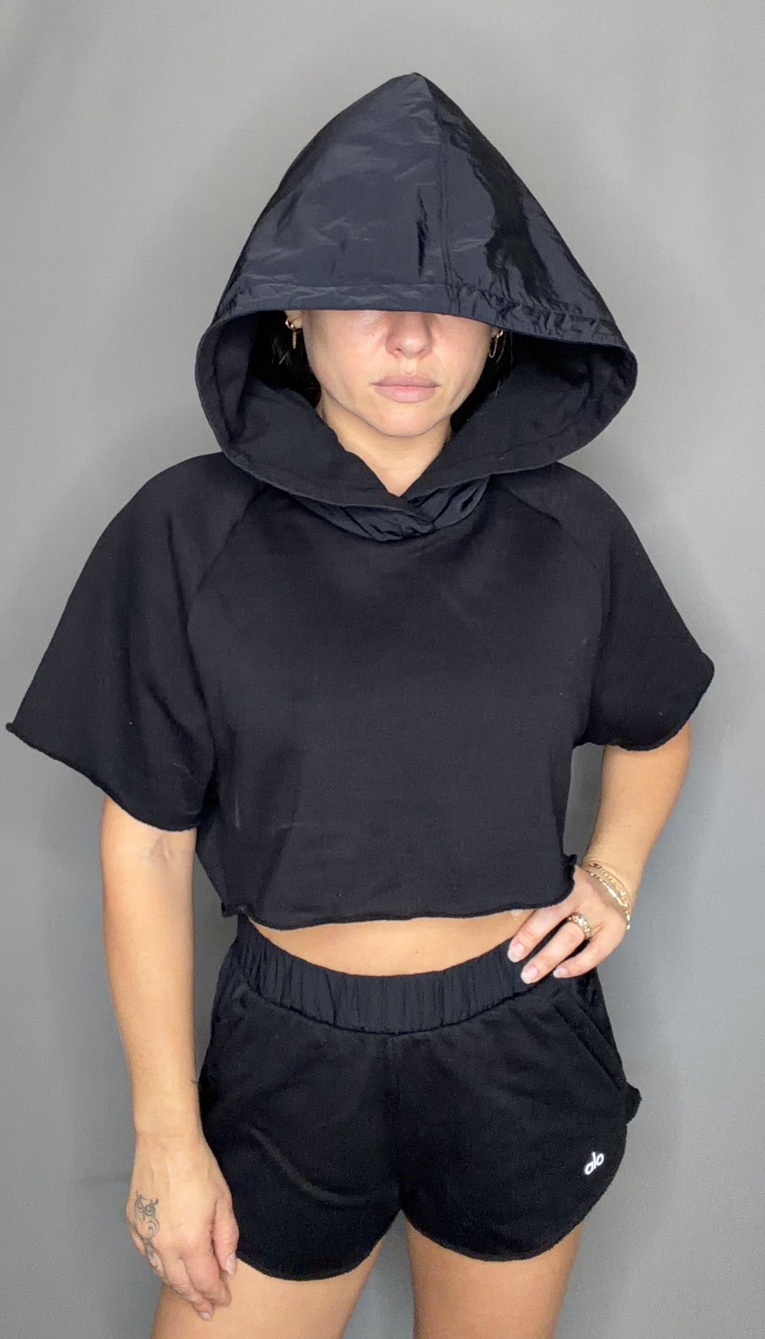 ALO Yoga Cropped Hoodie + Shorts Set – Black – Size XS – NEW – $35
