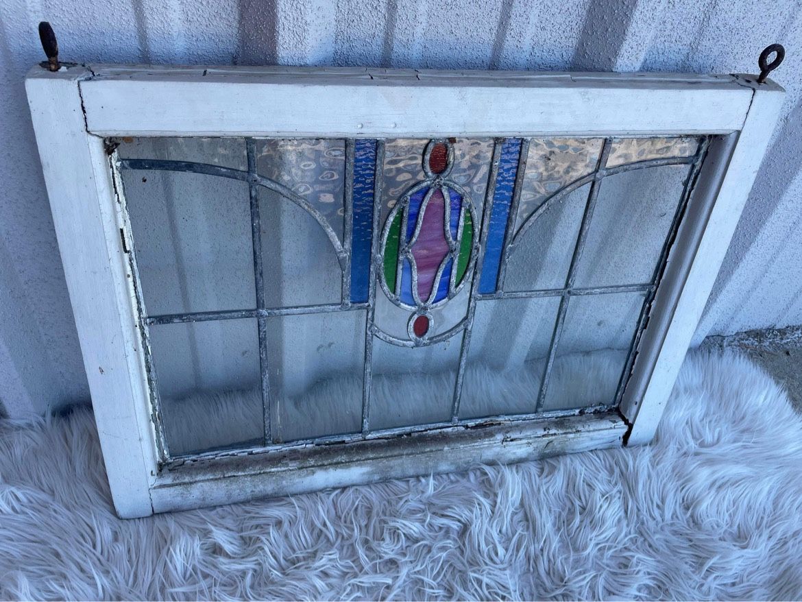 Antique stained glass 25”x17 1/2” $120