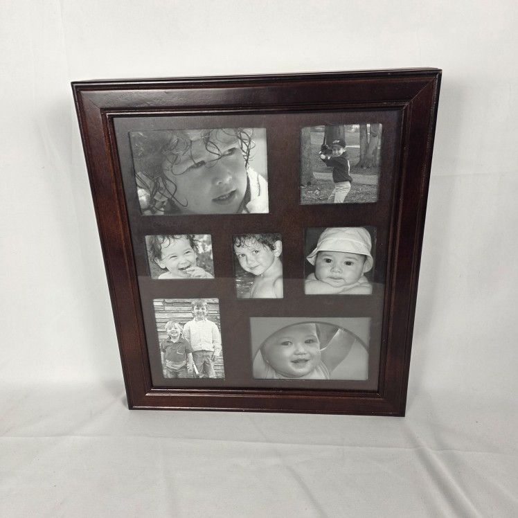 Stunning dark wood wall cabinet that combines a multi-photo frame with hidden storage inside. Opens like a door to reveal hooks for your dazzling necklaces, slots for sparkling rings, and compartments for bracelets and accessories. Keeps everything organized while displaying your favorite memory photos. Measurements: 14” W x 16” H x 2.5” D Pick up in Shorewood