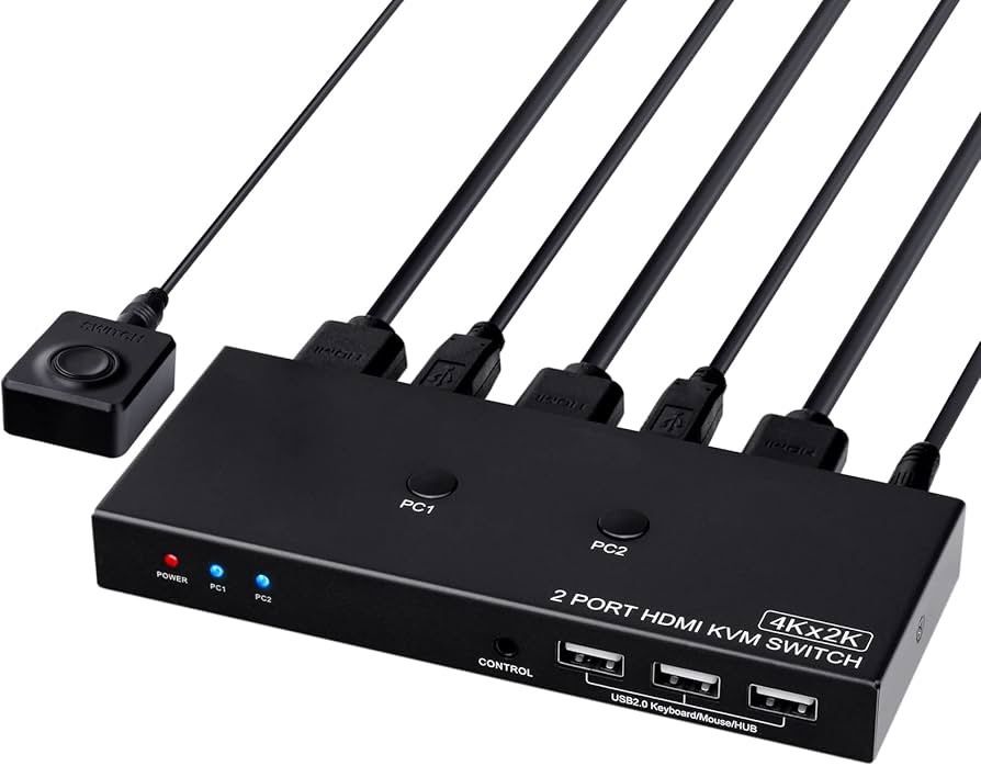 KVM Switch 4K@60Hz, HDMI USB Switch for 2 Computer Share UHD Monitor and Keyboard Mouse Printer, Support YUV RGB 4:4:4, with 2 USB Cables & Wired Controller