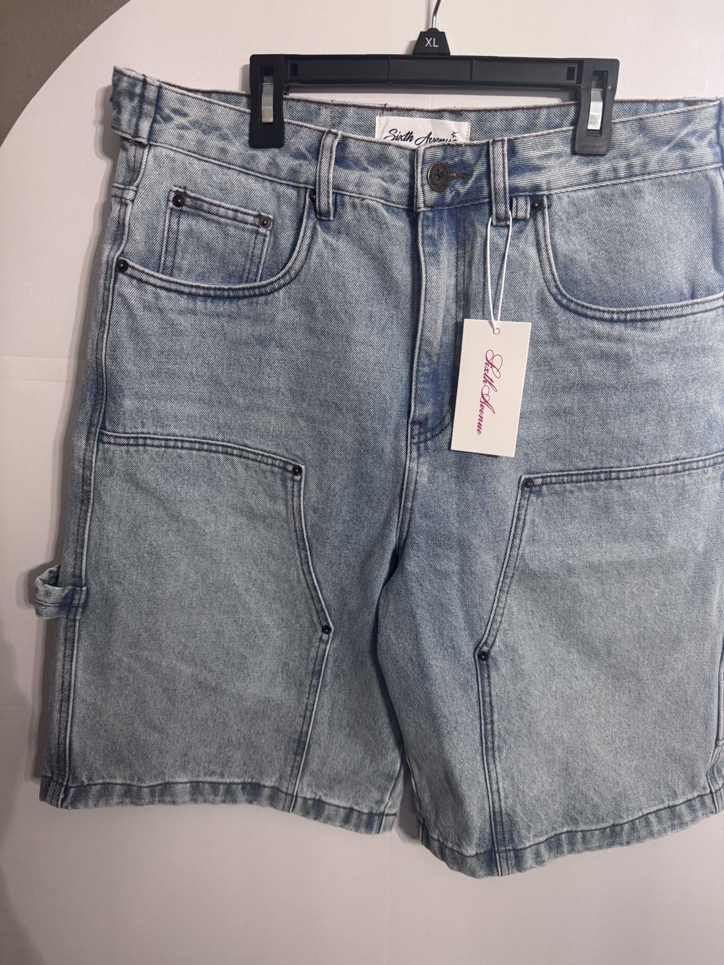 Selling brand new never used still with tag sixth avenue baggy denim carpenter shorts with double knee light blue colorway size 32 Asking $65