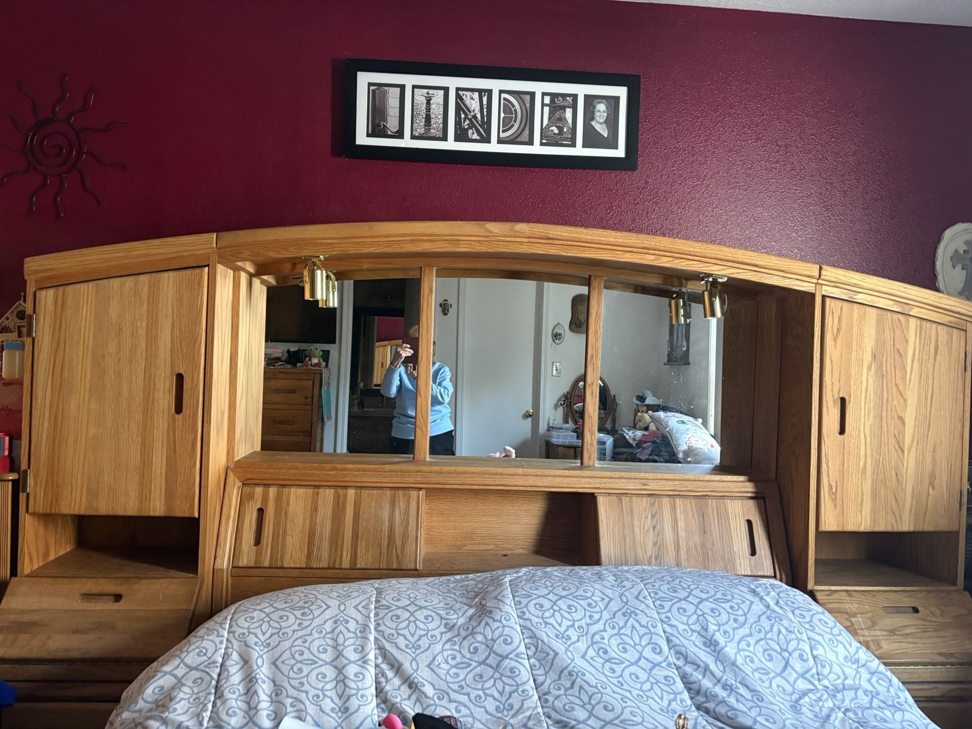Full/ Queen Headboard With mirror, Top And Side Drawers