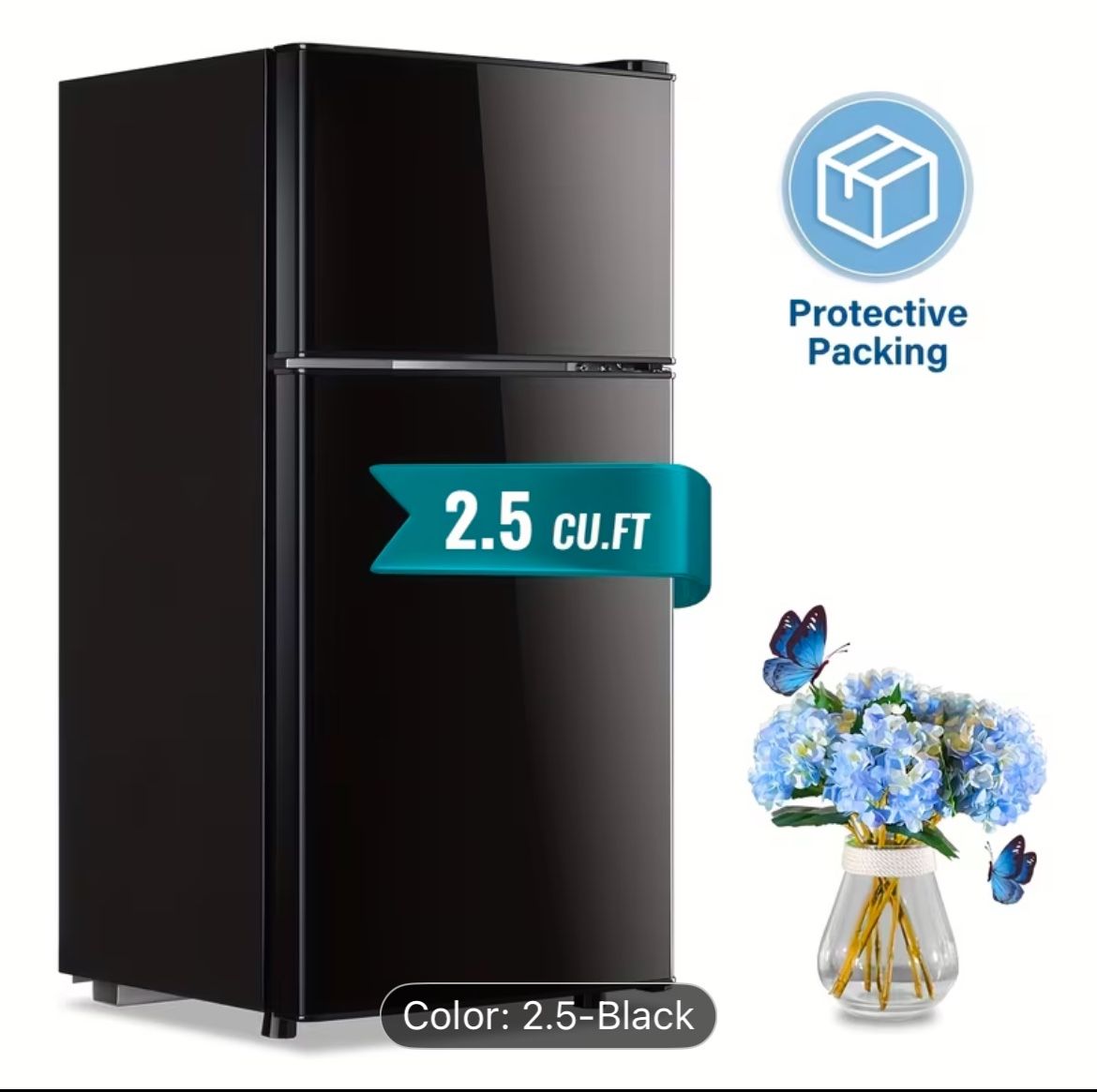 Black 3.5/2.5 Cu.ft Small Fridge With Freezer 2-Door Compact Refrigerator With 7-Level Adjustable Thermostat, Removable Shelves And Bakset, Perfect For Dorm, Office, RV, Bedroom. Still in box.