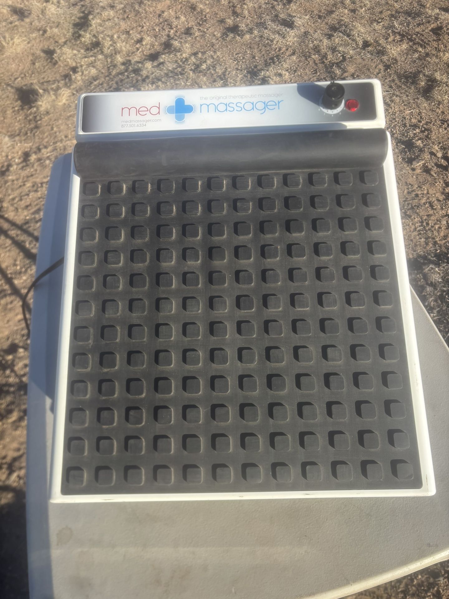 MedMassager Foot Massager Machine MMF07, Electric Therapeutic 11 Speed Use this MedMassager MMF07 11-SPEED VARIABLE CONTROL machine to soothe the lower extremities any time of the day. It can be positioned to work on the footbed or heel and calves. Ergonomically designed, this foot massage machine is meant to provide optimal relaxation. There are many different settings to choose from when using the MedMassager foot massager, and RPM rates range from 1000 to 4000, depending on what level you're comfortable with. Use with or without shoes. This type of therapy is beneficial for occasional use, to improve circulation and decrease muscle tension. The main surface features square nodes that help massage the skin as well. Enjoy the benefits of this personal. Helps to improve blood flow and oxygenation, lessen joint pain and provide an overall well-body feeling. When coming home after a day of work or play with tired, achy feet, there is no better feeling of relaxation than the MedMassager foot unit. Your feet will feel refreshed and ready for the rest of your day Because of the incredible increase of oxygenated blood flow to these areas, muscles and tendons relax and you will experience an overall feeling of well-being Ergonomically designed to be used on the floor while sitting on a chair, our MedMassager is angled as to be most comfortable while receiving the maximum possible therapeutic benefit Clinicians report that they use the Medmassager Foot unit for stimulating local circulation, easing muscle tension and alleviating joint pain and swelling Ergonomically designed, the foot pad is set at the optimal angle for most comfort while massaging This massager offers the ultimate massager experience for anybody who spends a lot of time on their feet or experience severe foot and leg pain The MedMassager Foot massager is used clinically to treat patients with severe circulation issues and pain as a result of diabetes and neuropathy. Used by doctors and therapists around the world, this massager is an important tool for stimulating local circulation, easing muscle tension and alleviating joint pain and swelling Includes 11 different individual speed settings for a complete custom experience The low speed features only 1000 RPMs and can range up to 4000 RPMs Ideal for all sensitivities in the lower body regions