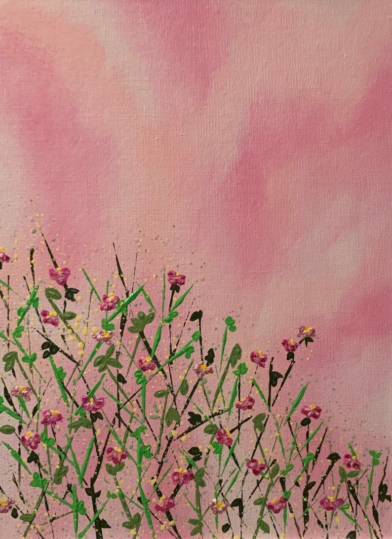 Pink Posies, Floral Art, Original Acrylic Painting, 9 x 12