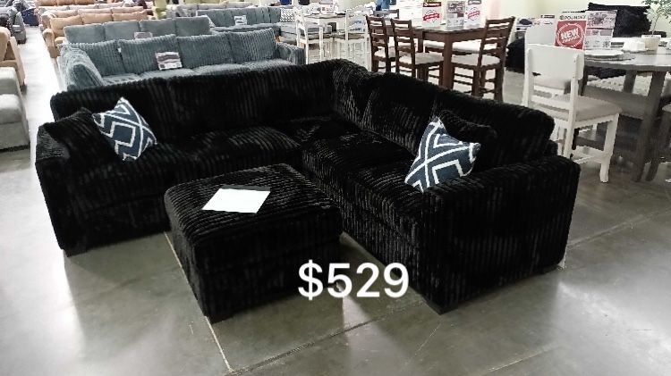 Only $529 No Tax ‼️4-pc Sectional Sofa With Ottoman Black Fur-like Jumbo Corduroy