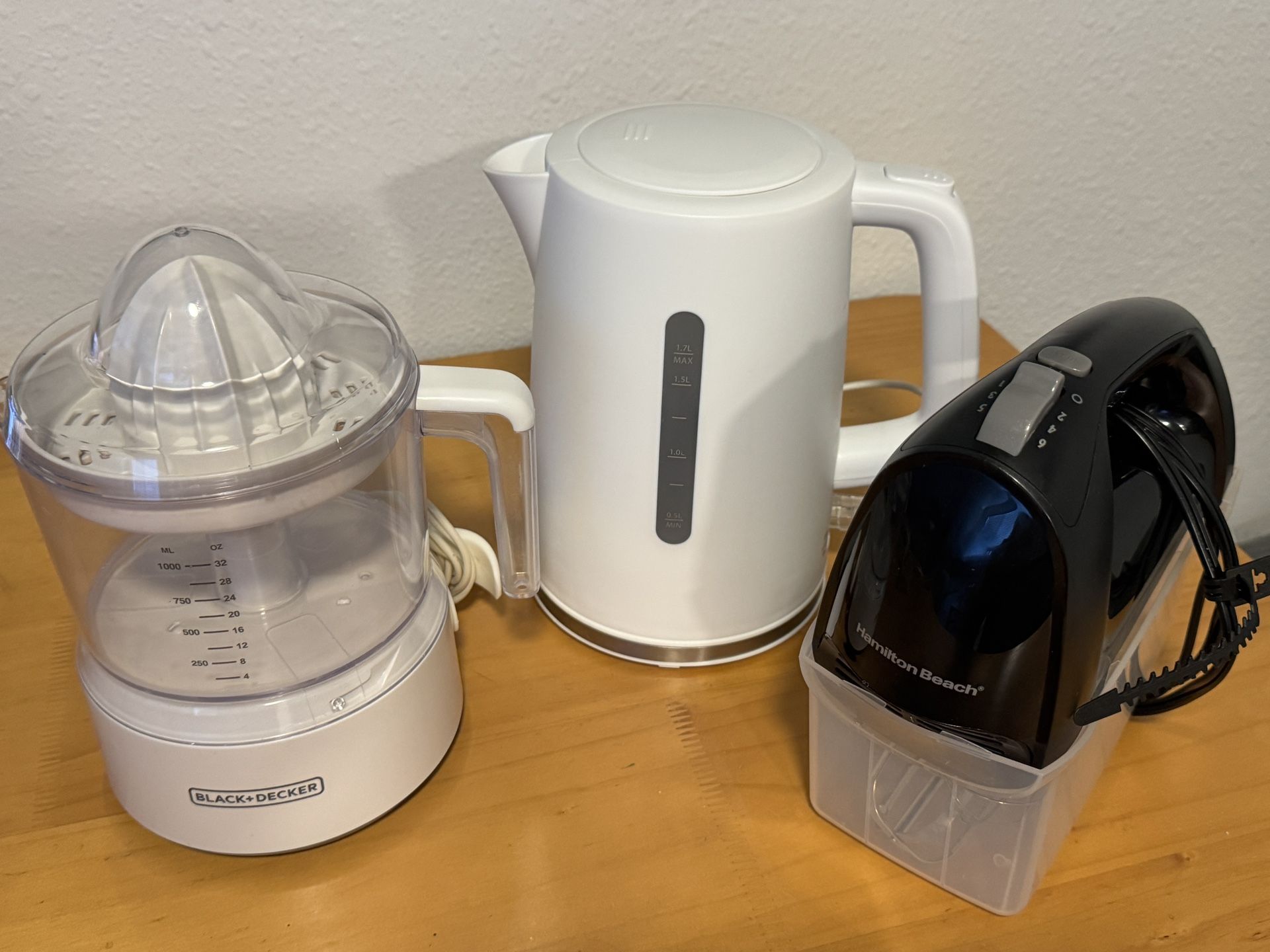 BLACK+DECKER Manual Citrus Juicer $ 10 1.7 L Electric Kettle $ 10 Hamilton Beach 6 Speed Hand Mixer with QuickBurst $ 10 All for $ 20.