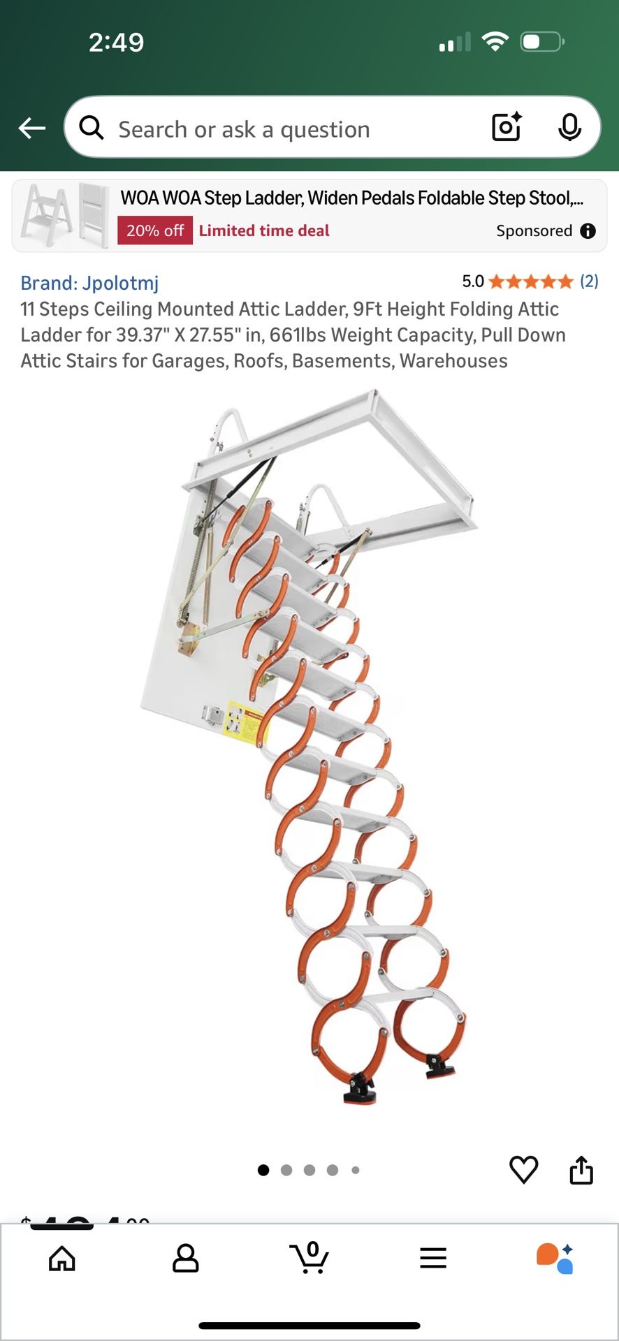 11 Steps Ceiling Mounted Attic Ladder, 9Ft Height Folding Attic Ladder for 39.37" X 27.55" in, 661lbs Weight Capacity, Pull Down Attic Stairs for Garages, Roofs, Basements, Warehouses Cash only, must pick up