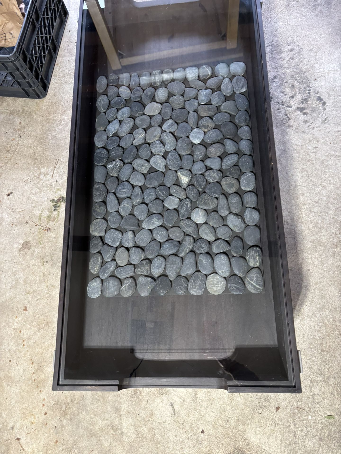 Width: 48 inches, Height: 15 inches, Depth: 23 inches Have had this in the garage thinking we’d eventually use it. Now hoping someone will actually get good use of it and enjoy it.