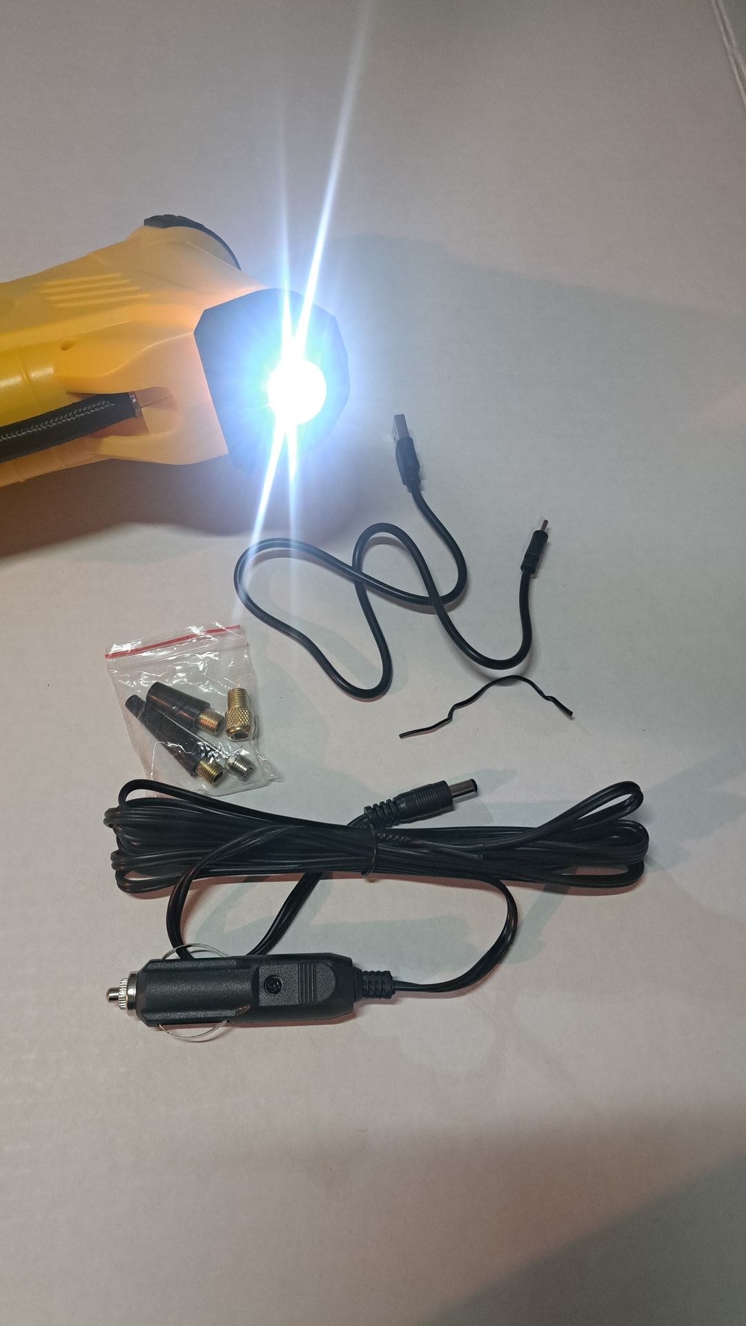 Nuevo inflador para neumaticos de auto ,moto y bicicleta con cargador para telefono y lampara Nuevo sin ningun uso
