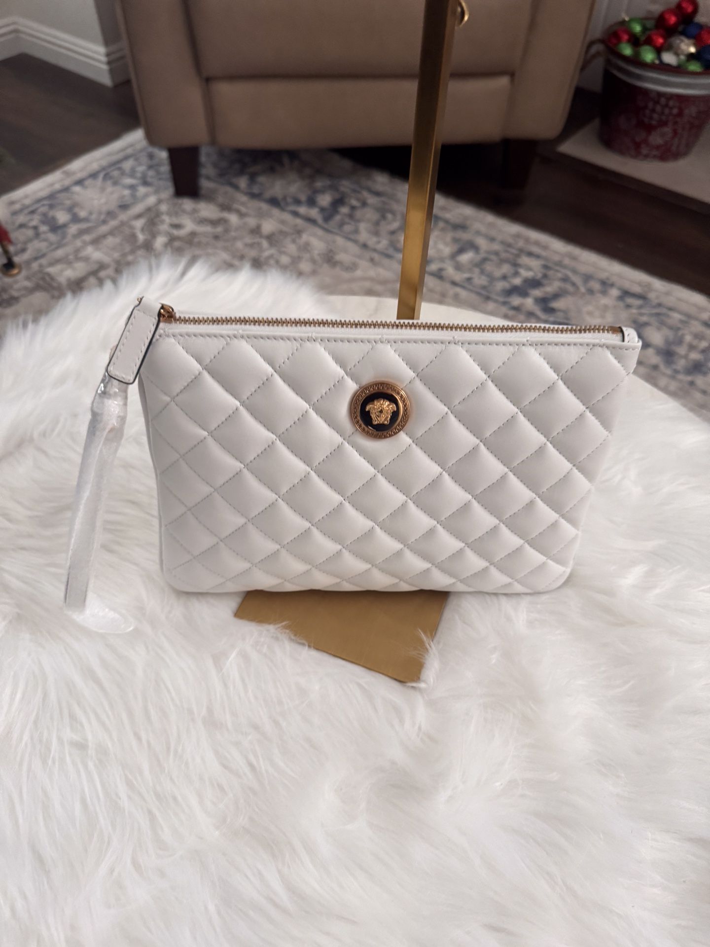 New Versace La Medusa white quilted leather clutch bag. Pick up and Cash only please. Thank you.