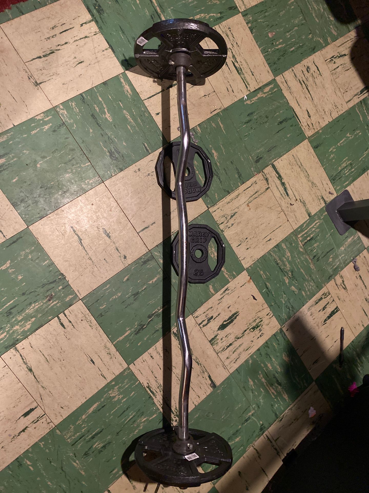 Ez curlbar with 2 10 lbs and 2 2.5 lbs weight plates I just got it can’t use it because I got Olympic weight so I’m selling it 70 obo