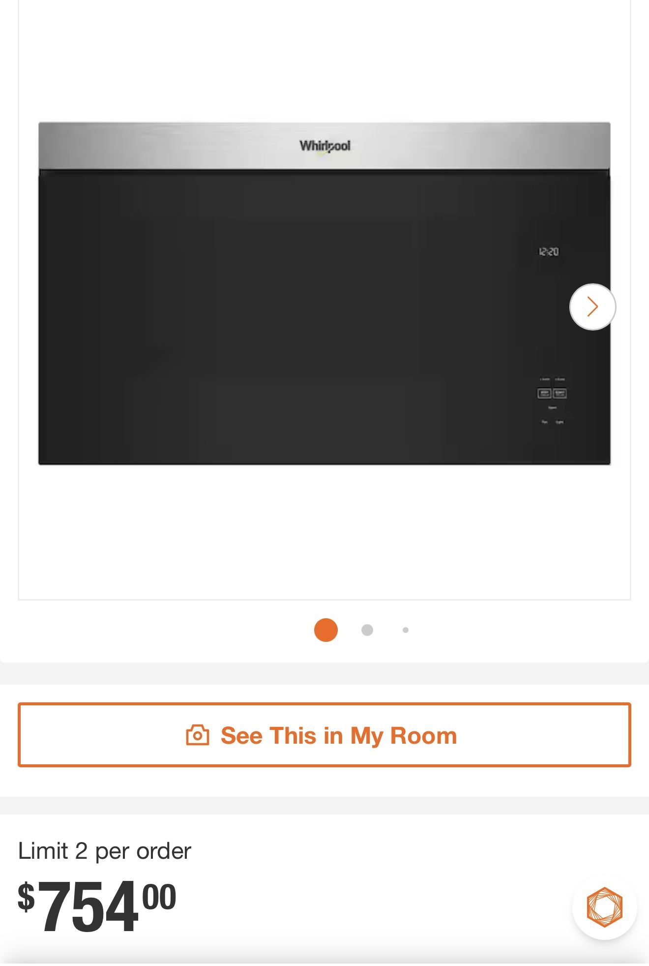 Pickup in Lodi CA Brand new sealed! Purchased directly from Home Depot Currently in stores for $754 + tax. Whirlpool 1.1 cu. ft. Over-the-Range Microwave in Fingerprint Resistant Stainless Steel with Turntable Free Design (Model # WMMF5930PZ)