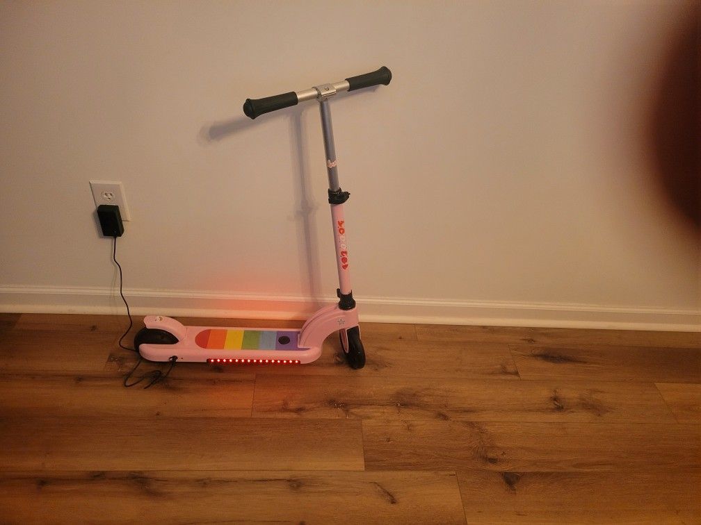 Electrical scooter with charger. Only rode a few times. Too fast for her. Little girls tablet in case still works perfectly.
