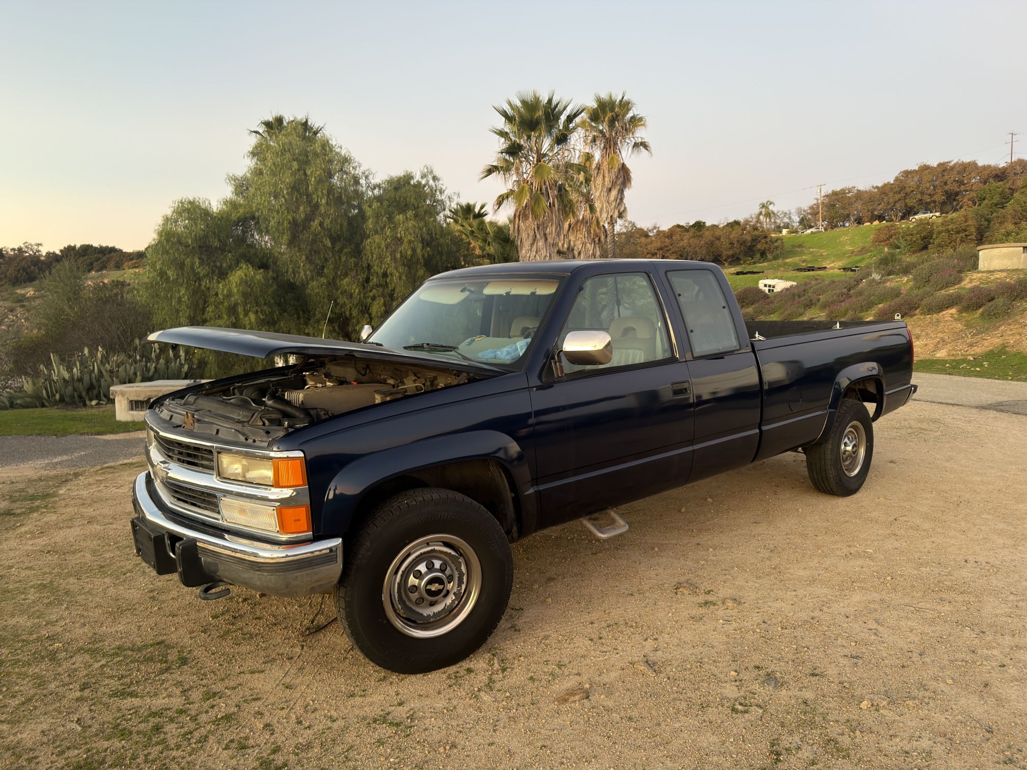 1994 Chevy K2500 4x4 w/ 6.5L turbo diesel. Auto trans w/ GearVendors overdrive. Ext cab long bed. Bad news up front-truck has coolant leak from the head. Could maybe possibly be just in need of a new gasket, but, more likely is the head is cracked and will need to be decked and resurfaced. Was quoted a little under 5K from local diesel shop. His trusted opinion was that due to mileage and age, the likelihood was that it was the latter option. If you still care to read, the truck was running phenomenal prior to. Front end was replaced within the last 5k miles, so the steering is tight and responsive. Father in law is the original owner, truck was babied and mostly sat as a spare truck the last decade back and forth between so cal and Havasu. 4x4 works, tires have plenty of life. I had a lot of grand plans for this truck, but the potential repair is not something I have the time or desire to battle at this point in life. Reach out if you have any other questions