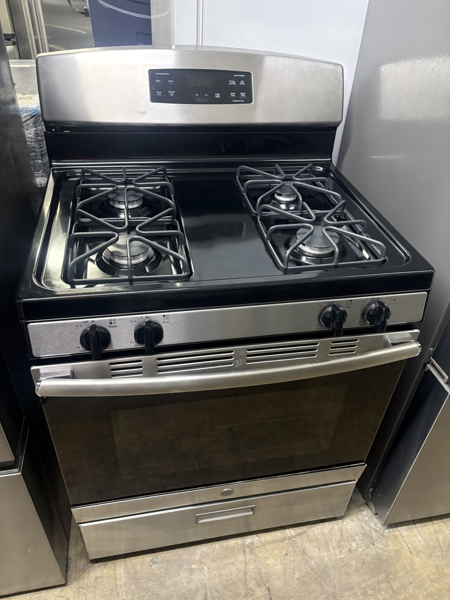 GE 4 Burners Stove 30” Wide Gas Oven Stainless Steel