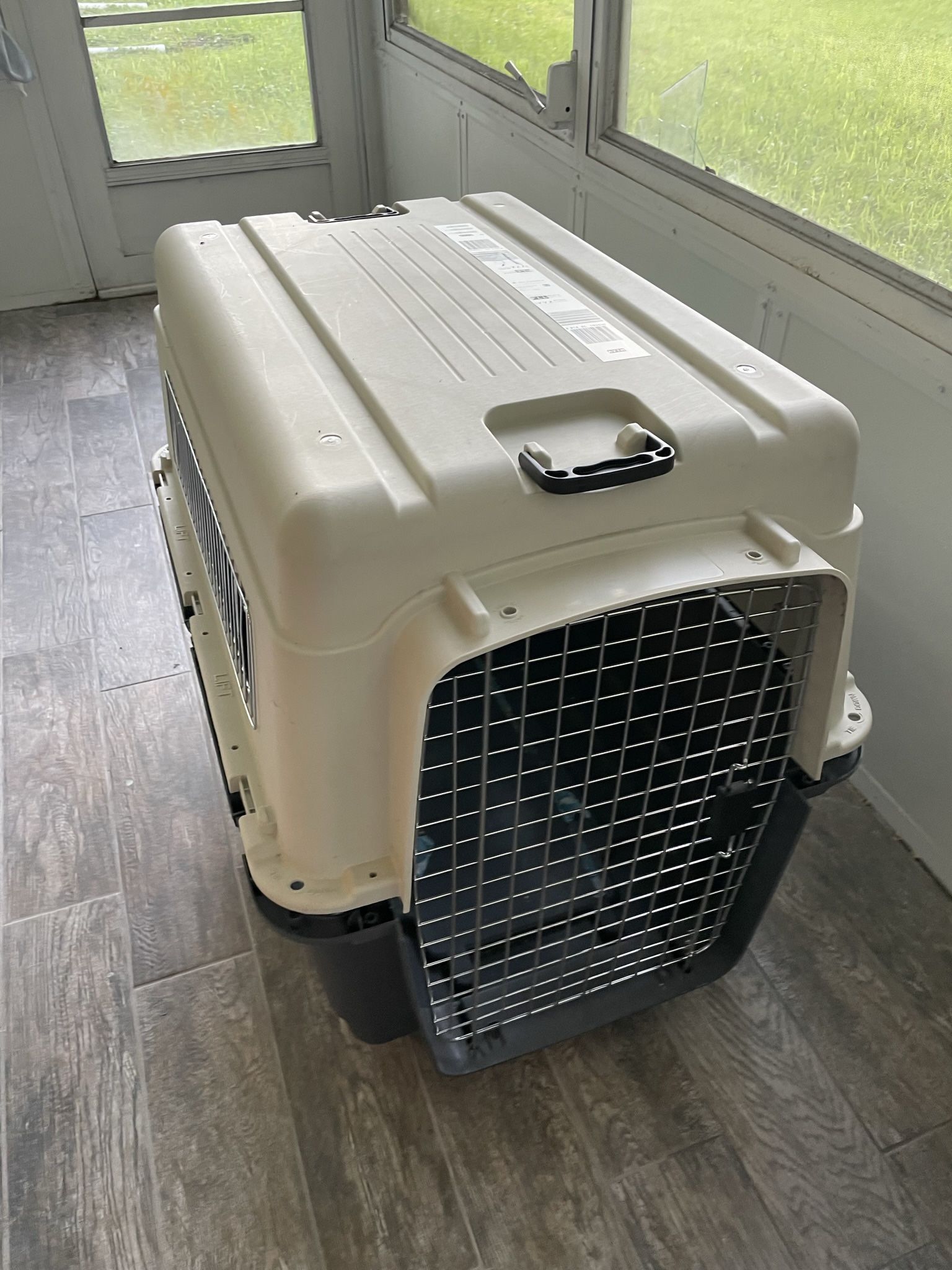 These 2 dog cages were used only once tu transport my dogs from Canada to the U.S. they are on very good condition , almost new . It was a good fit for a Labrador and an American Bully