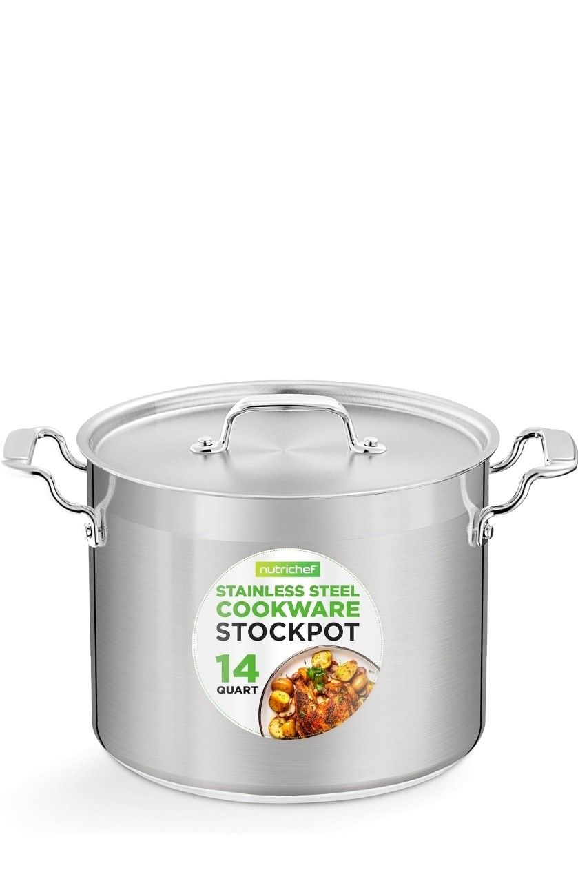NutriChef 14 Quart Stock Pot with Lid - Heavy Duty Stainless Steel, Induction Ready, Ergonomic Handles