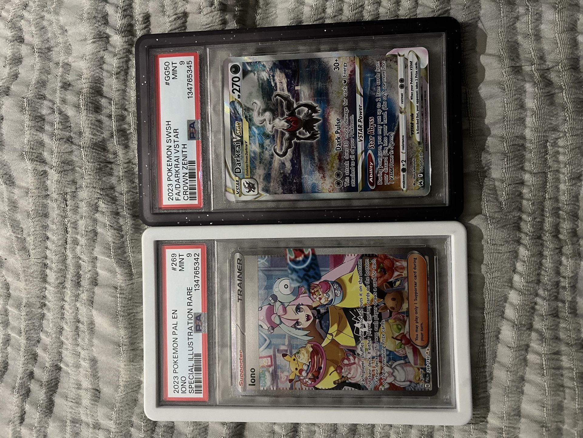 Darkrai vstar PSA 9 Iono PSA 9 $100 for both comes with the guards