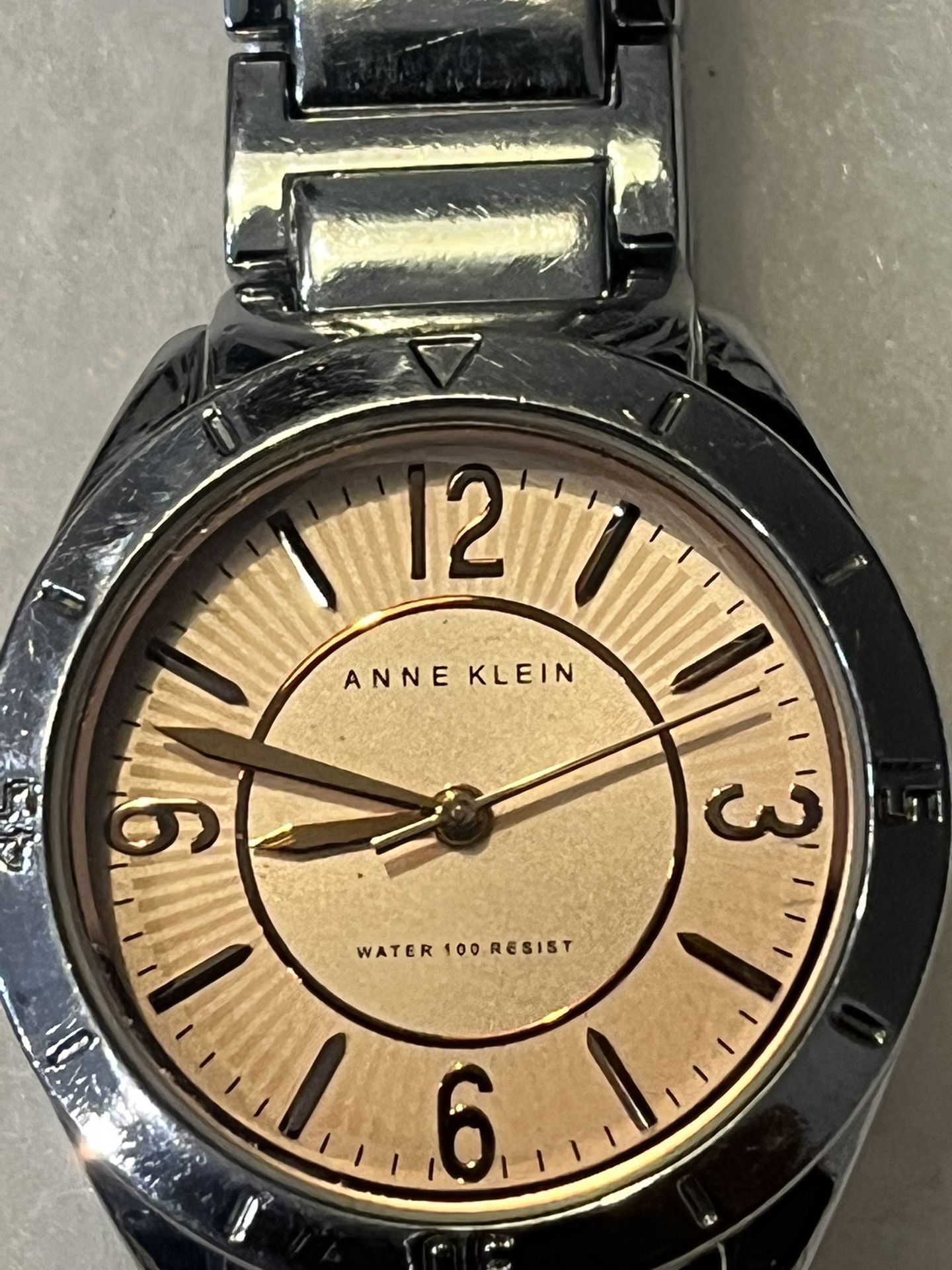 This Anne Klein wristwatch is a stylish and functional accessory for women who appreciate elegance and practicality. The rose gold tone face with silver dial pattern and analog display adds a touch of sophistication to any outfit. The bracelet band made of a combination of resin and metal is durable and comfortable to wear. This watch has a water resistance of up to 100m (10ATM) and comes with a bezel color of rose gold. Although it does not come with original papers or box, it is still a valuable addition to any watch collection. Get this Anne Klein women's wristwatch and elevate your style today.