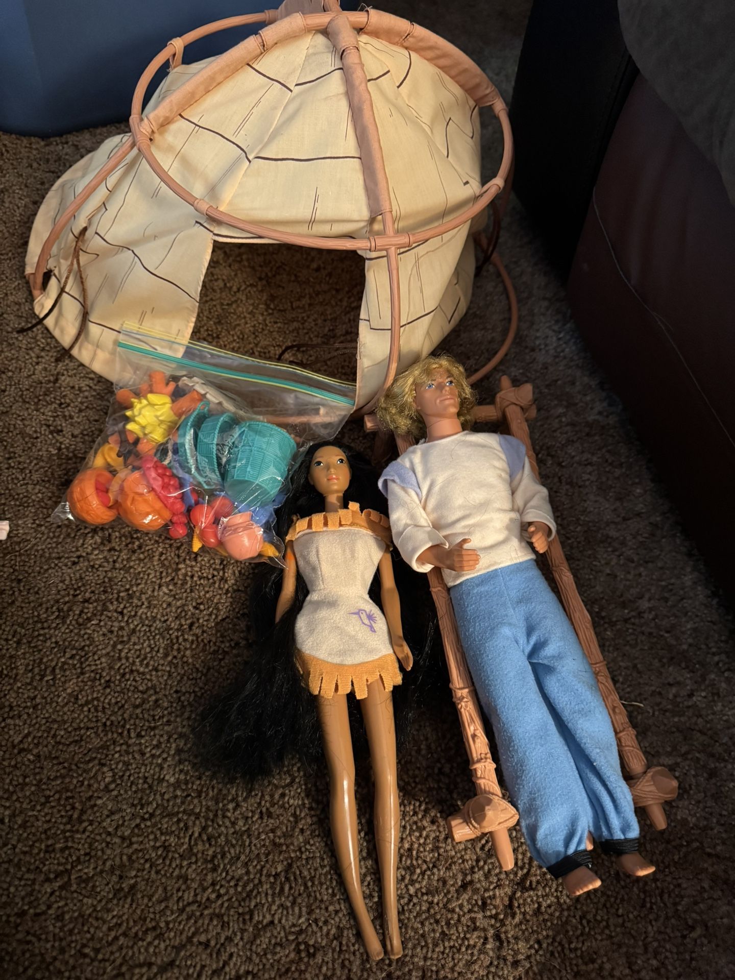 Pocahontas John Smith Indian hut Wood bed Cooking supplies