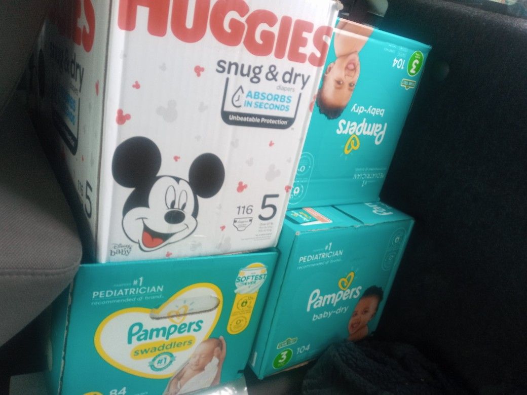 I have brand new boxes of Huggies and Pampers diapers. my fiance had a huge baby shower and then we ended up losing the baby last minute. Right now we're not doing so well so we are trying to sell the diapers that we have. most of the boxes are between 104 count and 150 count in all sizes. I am selling the boxes for $25 each or if you buy five or more then I can do $20 each. Just send me a message with what you are looking for in size and I will tell you what I have available. Please and thank you