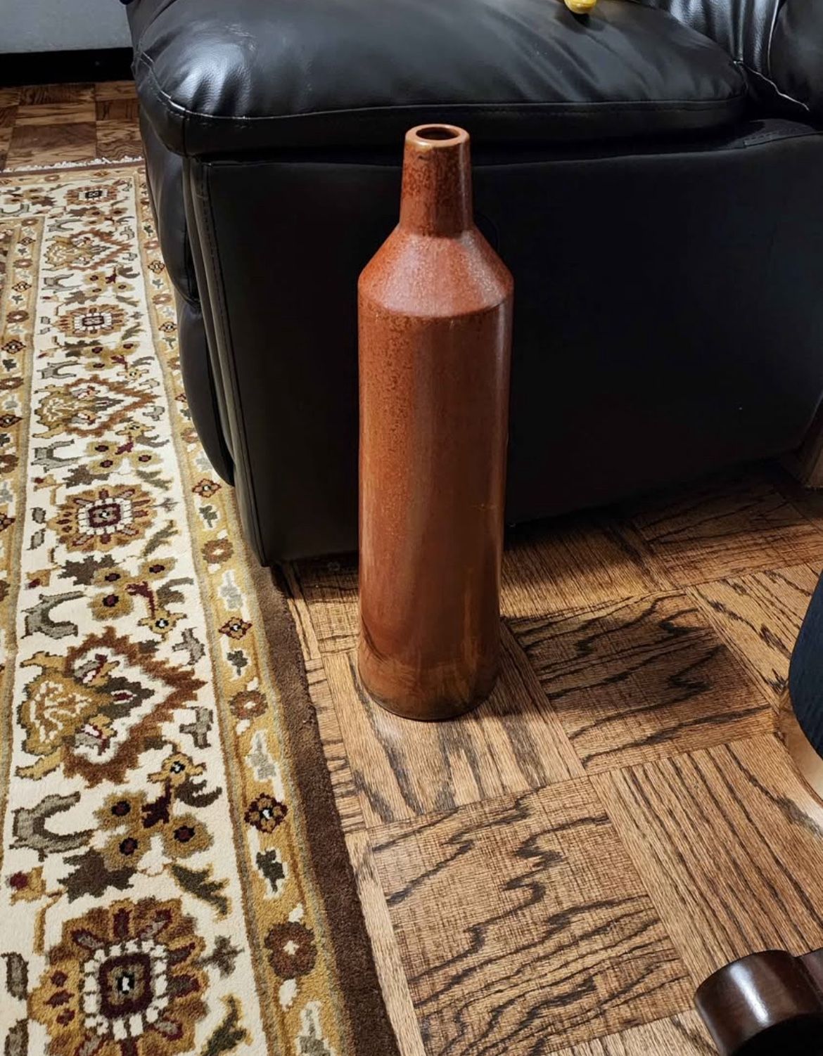 Gorgeous 22.5 high autumn copper color ceramic bottle vase. Sturdy.