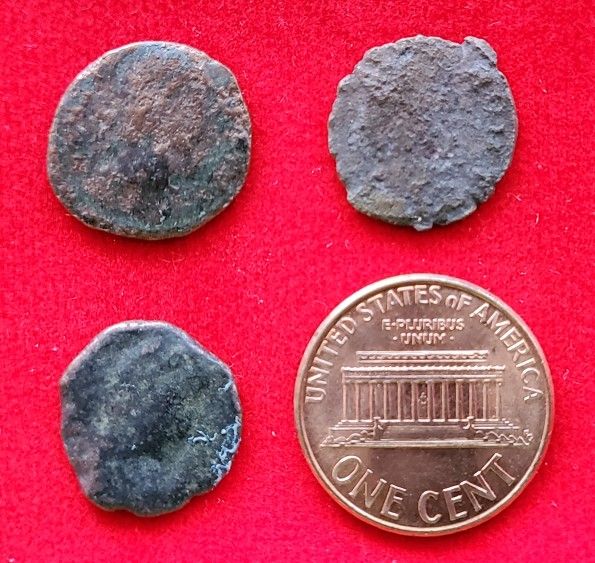 Lot of 3 Authentic Genuine Ancient Bronze Roman Imperial Coins including She-wolf Romulus and Remus City Commemorative Coin. Low grade.