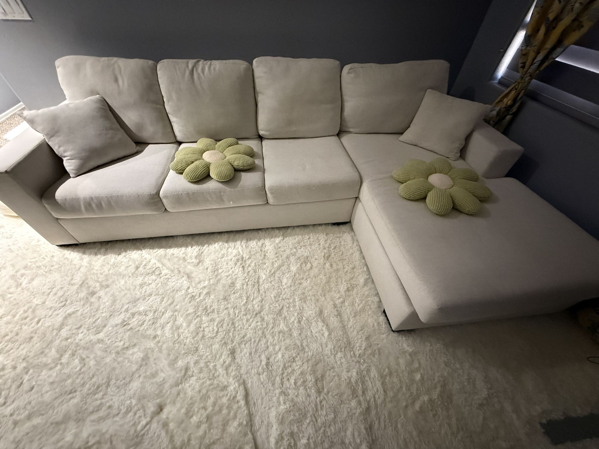 Two piece sectional with chaise, perfect condition. No sag, no smell. Couch currently sits upstairs where nobody ever sits on it, and we’ve bought new couch and need current couch gone. 450$ OBO