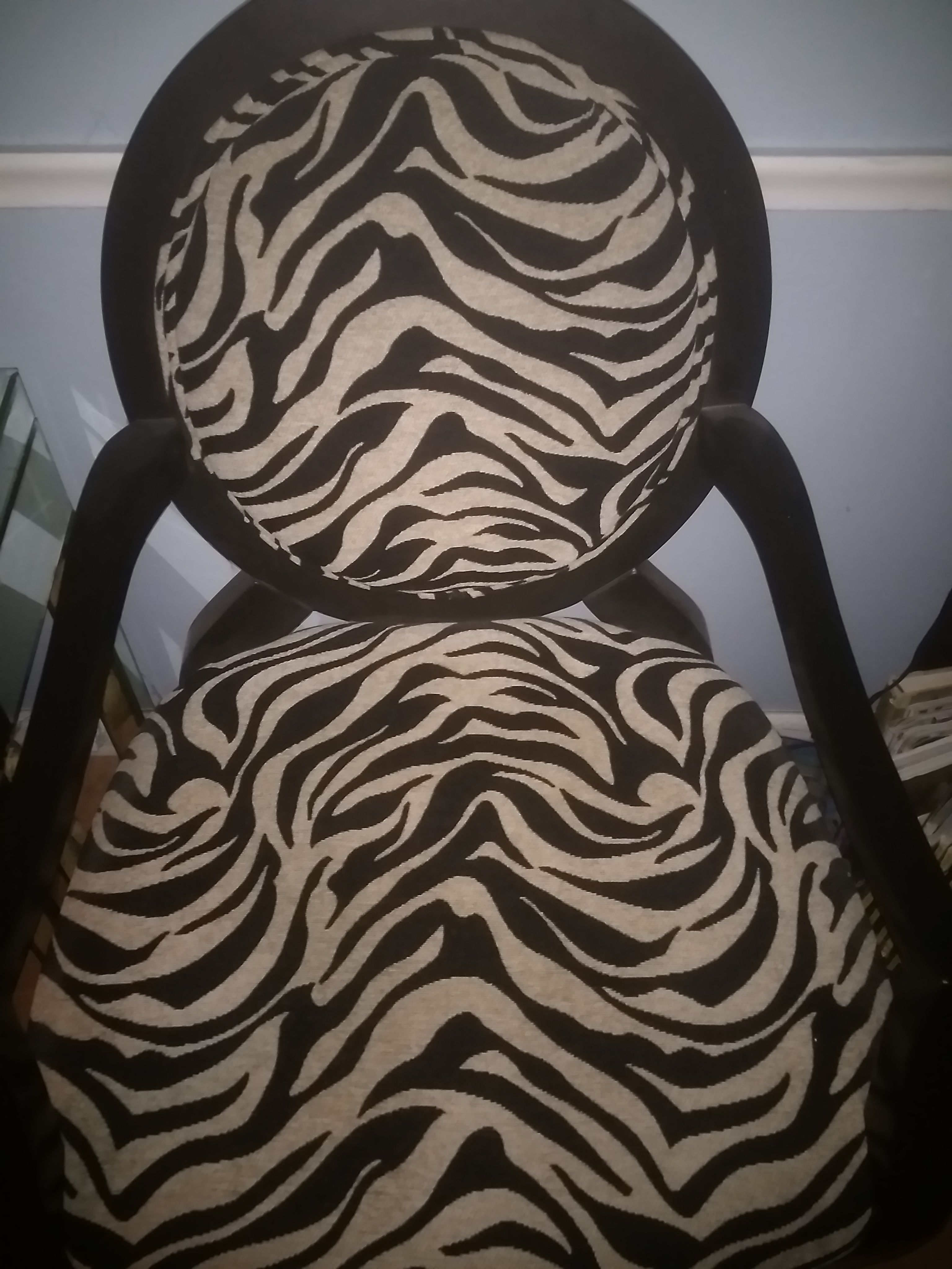 Zebra print and wooden chairs brand new $160 for both