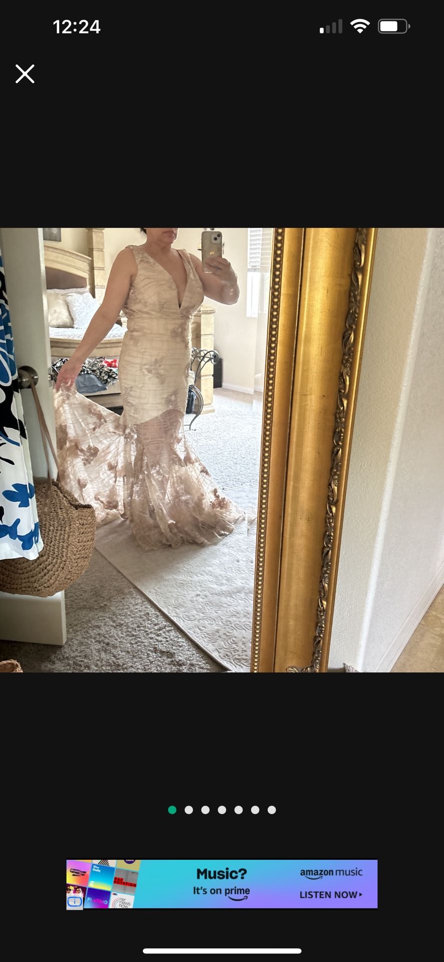 New Formal Dress, Beige Color, Long Length Size 6, No Sleeves